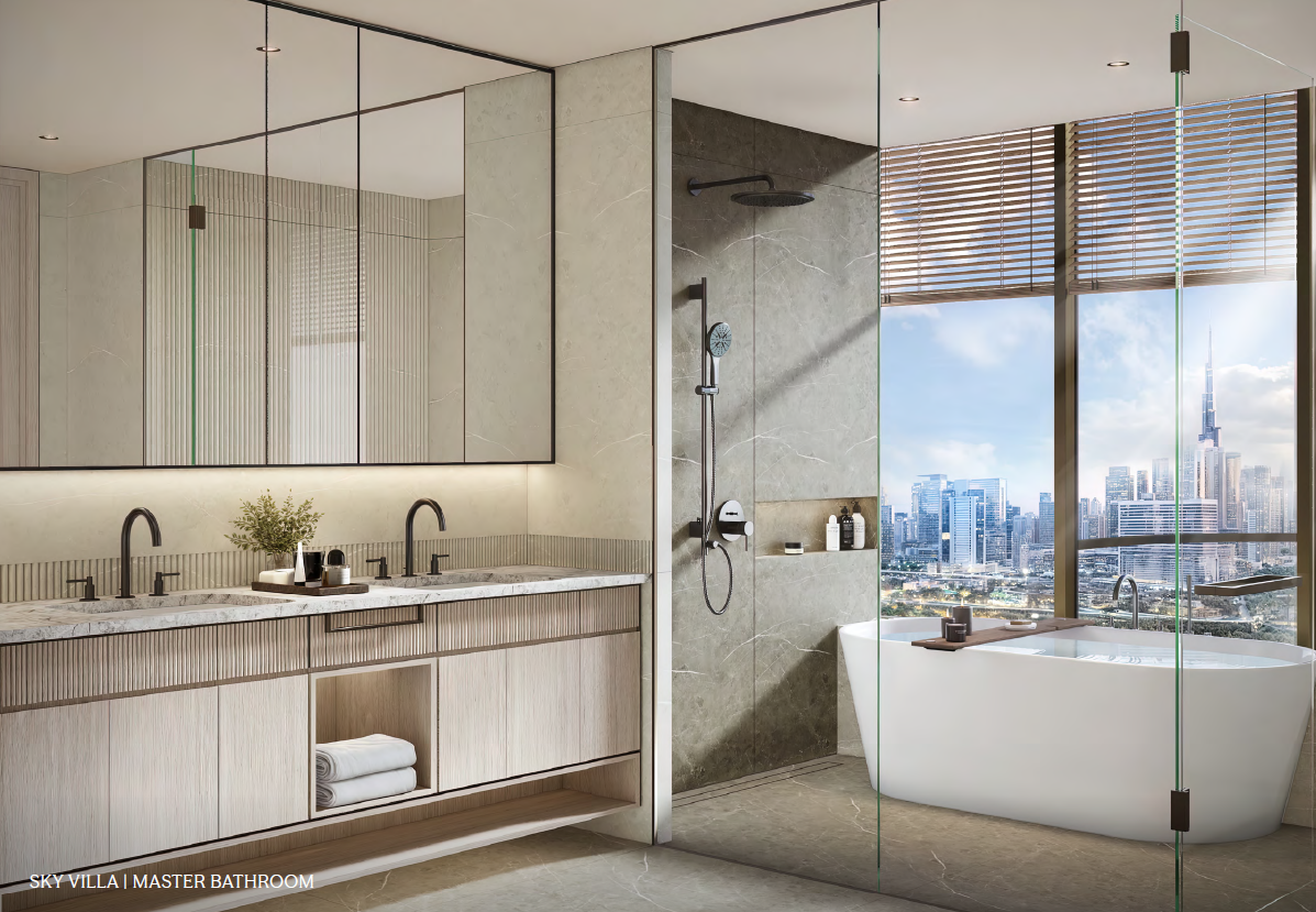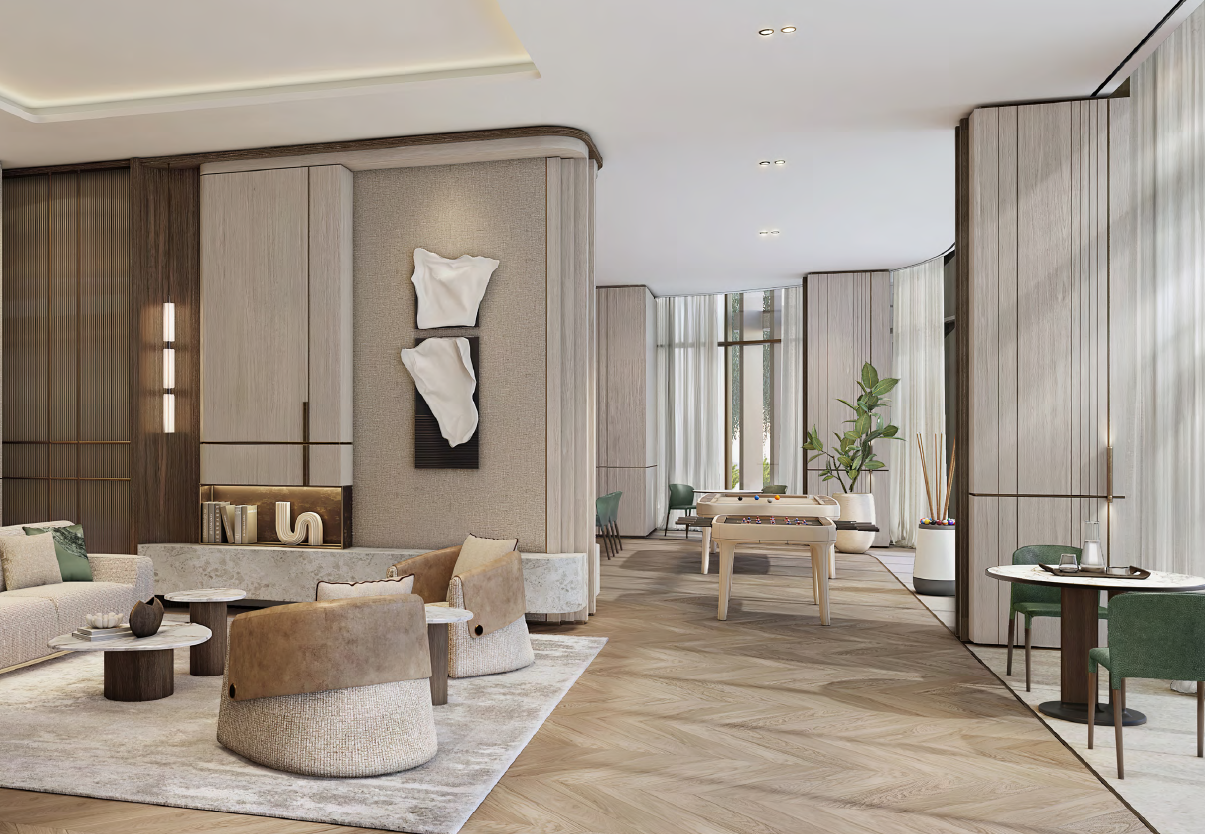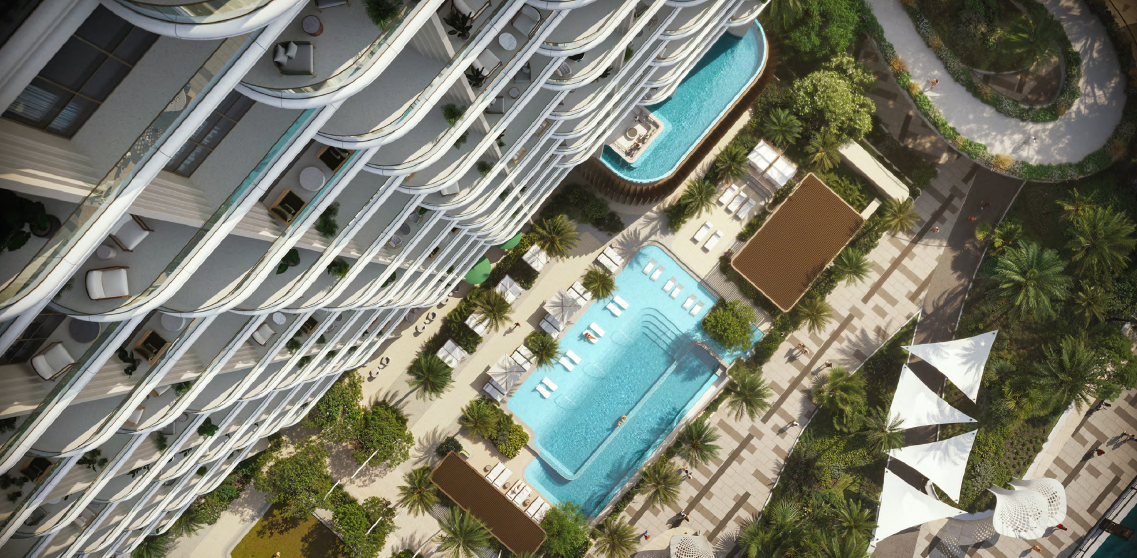 Die beeindruckende Einfahrt, umrahmt von atemberaubender Natur, bietet Ihnen einen grandiosen Empfang. Von dort gelangen Sie direkt zum Wasserufer, wo Sie unvergleichliche Ruhe und Entspannung genießen können. Der überwältigende Infinity-Pool mit Blick auf die Skyline lädt zum Schwimmen und Verweilen ein. Exklusive Pool-Suiten bieten Ihnen ein Höchstmaß an Privatsphäre und Luxus. Für die Kleinen gibt es einen separaten Kinderpool, während Sonnenbänke, Sitzecken und Cabanas zum Entspannen einladen. Gesellige Lounges bieten den idealen Rahmen für Zusammenkünfte mit Freunden und Familie.