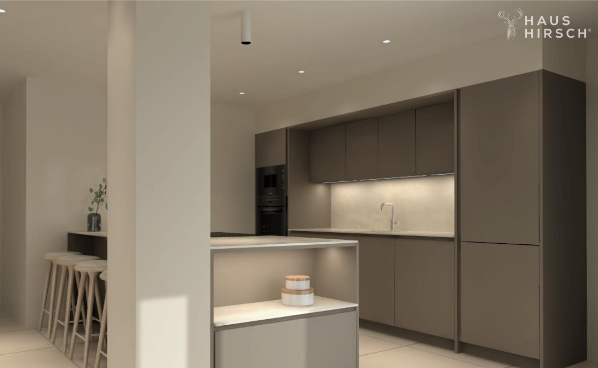 Die gehobene Ausstattung der Wohnung lässt keine Wünsche offen. Ein Highlight ist der offene Wohn- und Essbereich mit einer komplett ausgestatteten Einbauküche. Von hier aus gelangen Sie auch auf den große Balkon, auf dem Sie die Sonne und die Ruhe genießen können. Die Klimaanlage sorgt auch an heißen Tagen für ein angenehmes Raumklima.