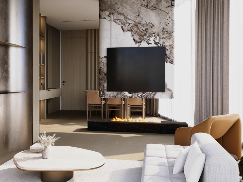 Luxuriöses 1-Zimmer-Apartment mit Blick auf die Skyline im oberen Stockwerk