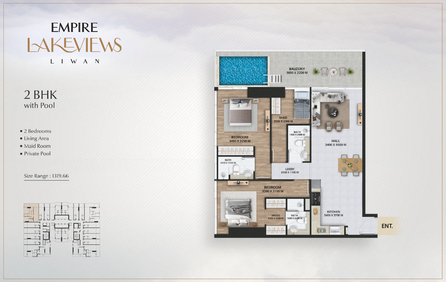 Willkommen in Ihrem luxuriösen Zuhause! Dieses 2-Zimmer-Apartment mit privatem Pool und Dienstbotenzimmer bietet alles, was Familien und Investoren begeistert. Betreten Sie das elegante Empfangs- und Aufzugsvorzimmer und lassen Sie sich von der stilvollen Atmosphäre verzaubern. Nehmen Sie sich Zeit für eine Runde auf dem hauseigenen Mini-Golfplatz und genießen Sie die exklusiven Annehmlichkeiten dieses einzigartigen Anwesens. Willkommen in Ihrer neuen Traumwohnung!