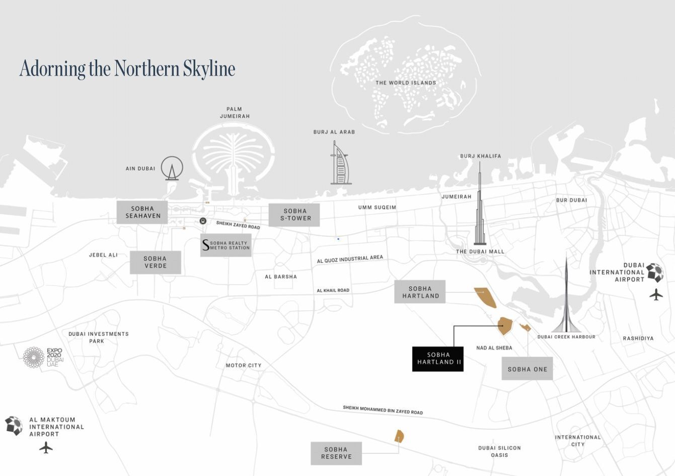 Die exklusive Immobilie im Stadtteil Bu Kadra / Hartland 2 in Dubai befindet sich in einer erstklassigen Lage mit zahlreichen attraktiven Aspekten rund um den Standort.