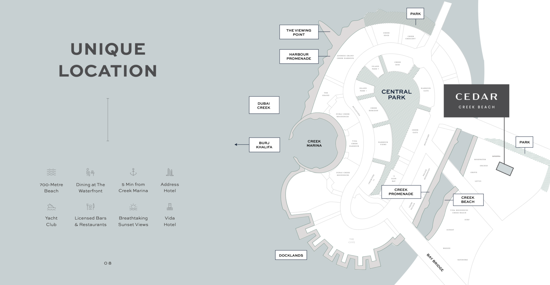 Für die Freizeitgestaltung bietet Dubai Creek Harbour eine Vielzahl von Attraktionen. Einkaufszentren, Restaurants und Unterhaltungsmöglichkeiten befinden sich in unmittelbarer Umgebung. Auch die Metropole Dubai mit ihren zahlreichen Sehenswürdigkeiten ist nur eine kurze Fahrt entfernt.