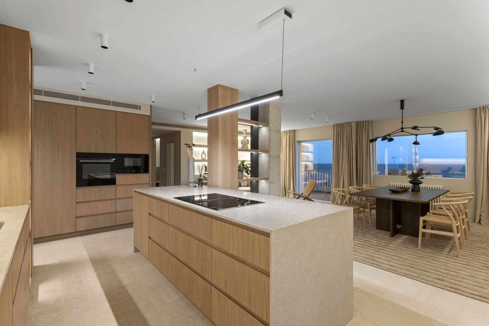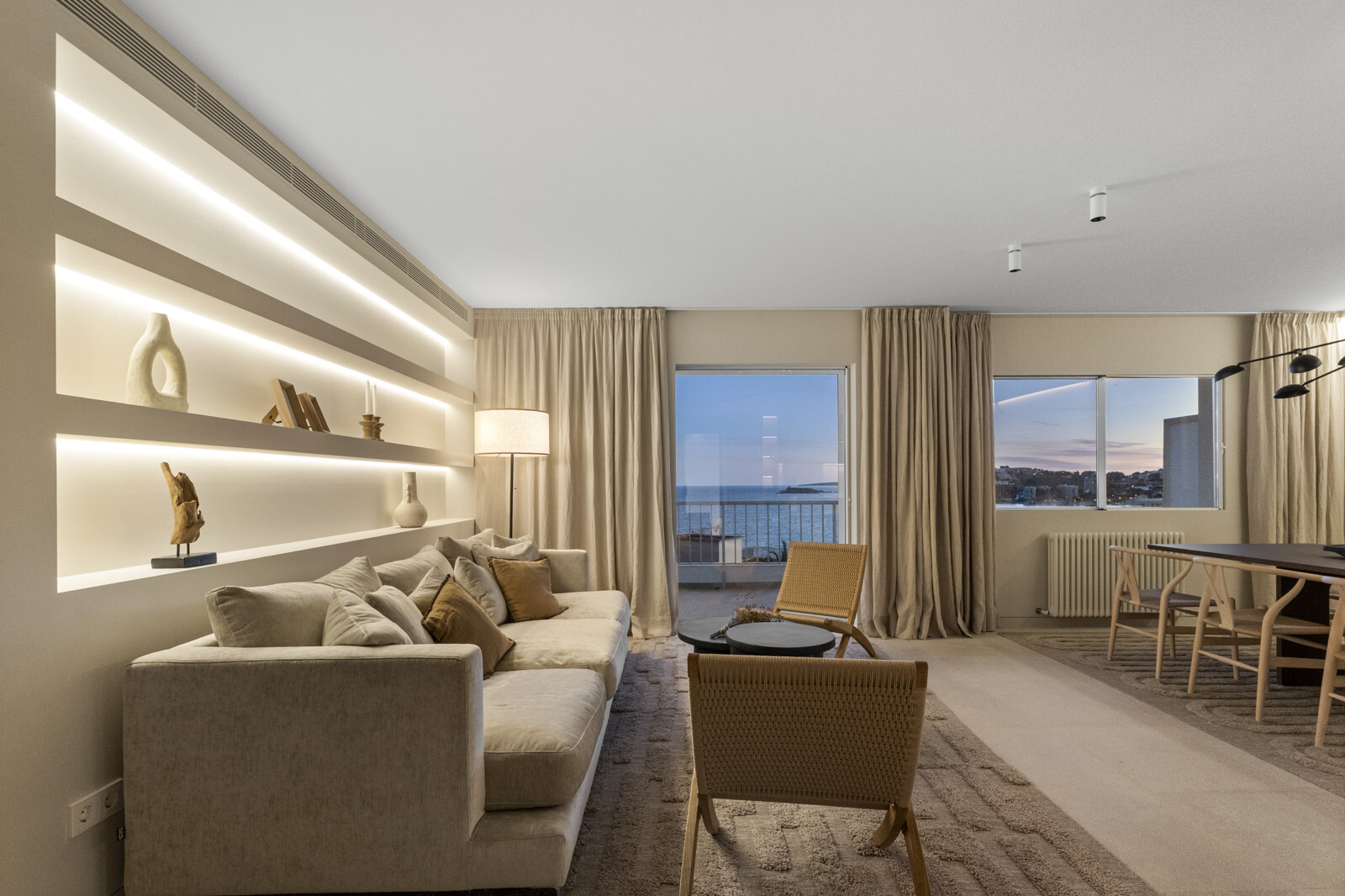 Willkommen in dieser eleganten und luxuriösen Wohnung mit 145 m² Wohnfläche und einer großzügigen 15 m² großen Terrasse. Sie befindet sich in zweiter Meereslinie und wurde vollständig mit höchsten Qualitätsstandards renoviert. Diese Traumimmobilie vereint moderne Eleganz mit mediterranem Charme und bietet einen freien und atemberaubenden Meerblick. Von der Südwesten ausgerichteten Terrasse können Sie die spektakuläre Panorama des Mittelmeers und die atemberaubenden Sonnenuntergänge Mallorcas genießen.