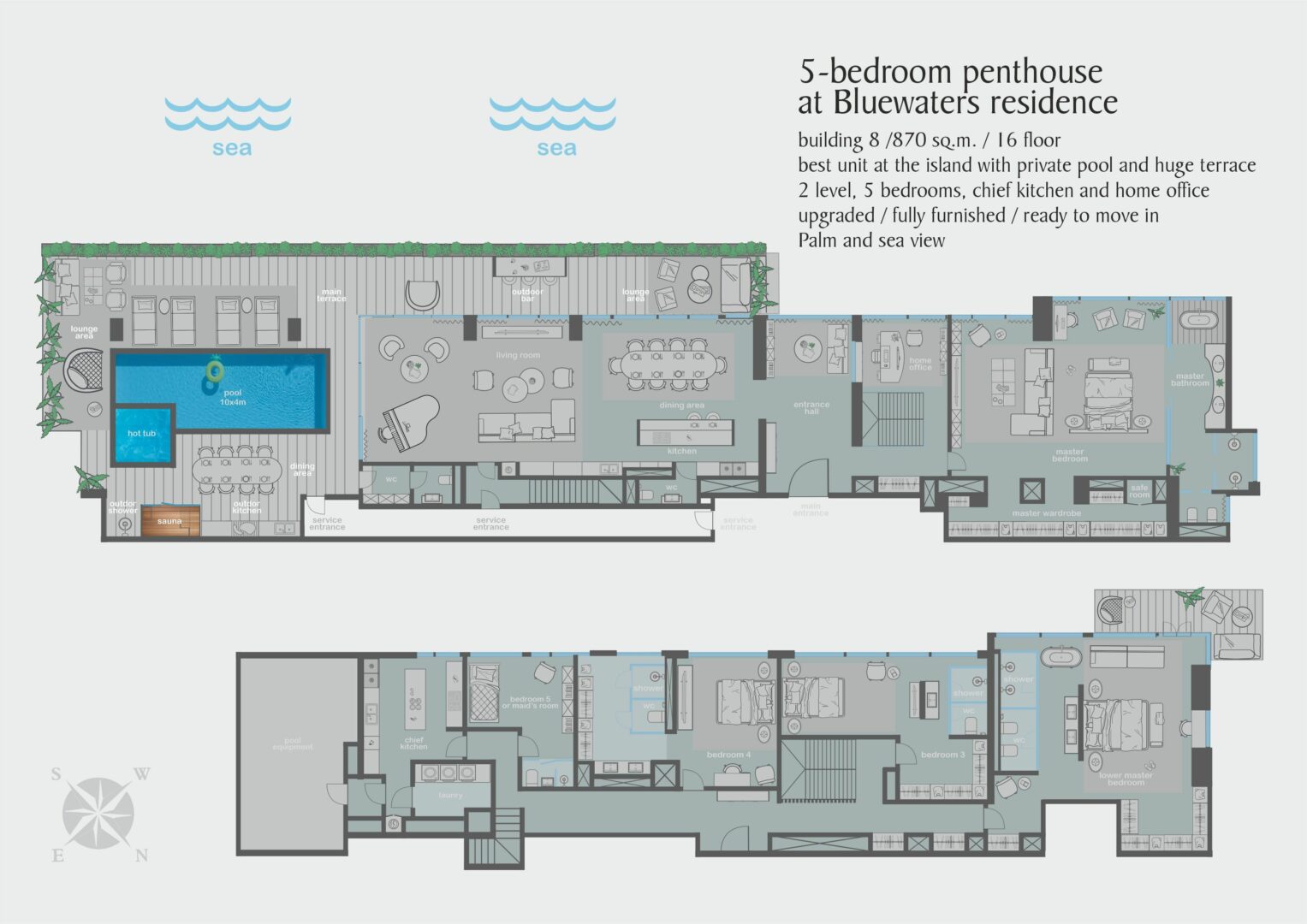 Diese Immobilie befindet sich im prestigeträchtigen Viertel Bluewater Residences in Dubai und bietet ein luxuriöses und exklusives Wohnerlebnis in einer der begehrtesten Gegenden der Stadt.