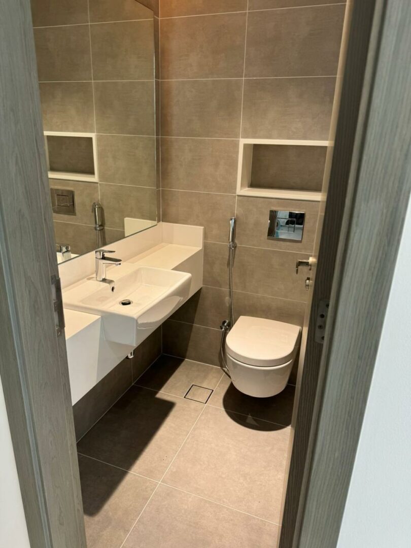 Treten Sie ein in dieses luxuriöse Apartment im District One Residence 12. Die 69 Quadratmeter große Wohnung auf der oberen Etage besticht mit einem Schlafzimmer, zwei Badezimmern und einem herrlichen Balkon.