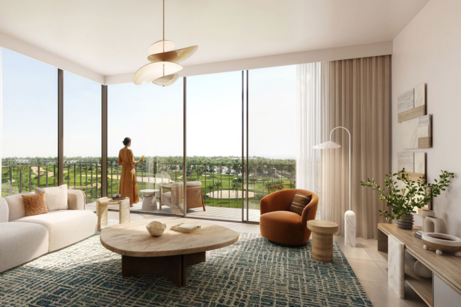 Treten Sie nach draußen auf die große Terrasse und genießen Sie den atemberaubenden Blick auf das Grün und den Golfplatz von Emaar South. Dieser Außenbereich eignet sich perfekt für Mahlzeiten im Freien, morgendliche Yoga-Sitzungen oder einfach nur, um mit einem guten Buch die Sonne zu genießen.