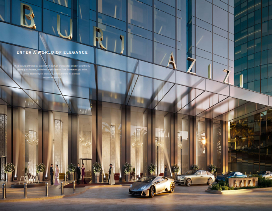 Der Burj Azizi ist ein 725 Meter hoher, gemischt genutzter Wolkenkratzer an der Sheikh Zayed Road gegenüber dem Museum der Zukunft und soll der zweithöchste Turm der Welt werden. Er vereint luxuriöse Wohnungen, prächtige Penthäuser und ein ikonisches Sieben-Sterne-Hotel mit sieben Suiten, die sich um sieben kulturelle Erlebnisse drehen, und ist mit hochwertigen Oberflächen und Panoramablick auf die Stadt ausgestattet.