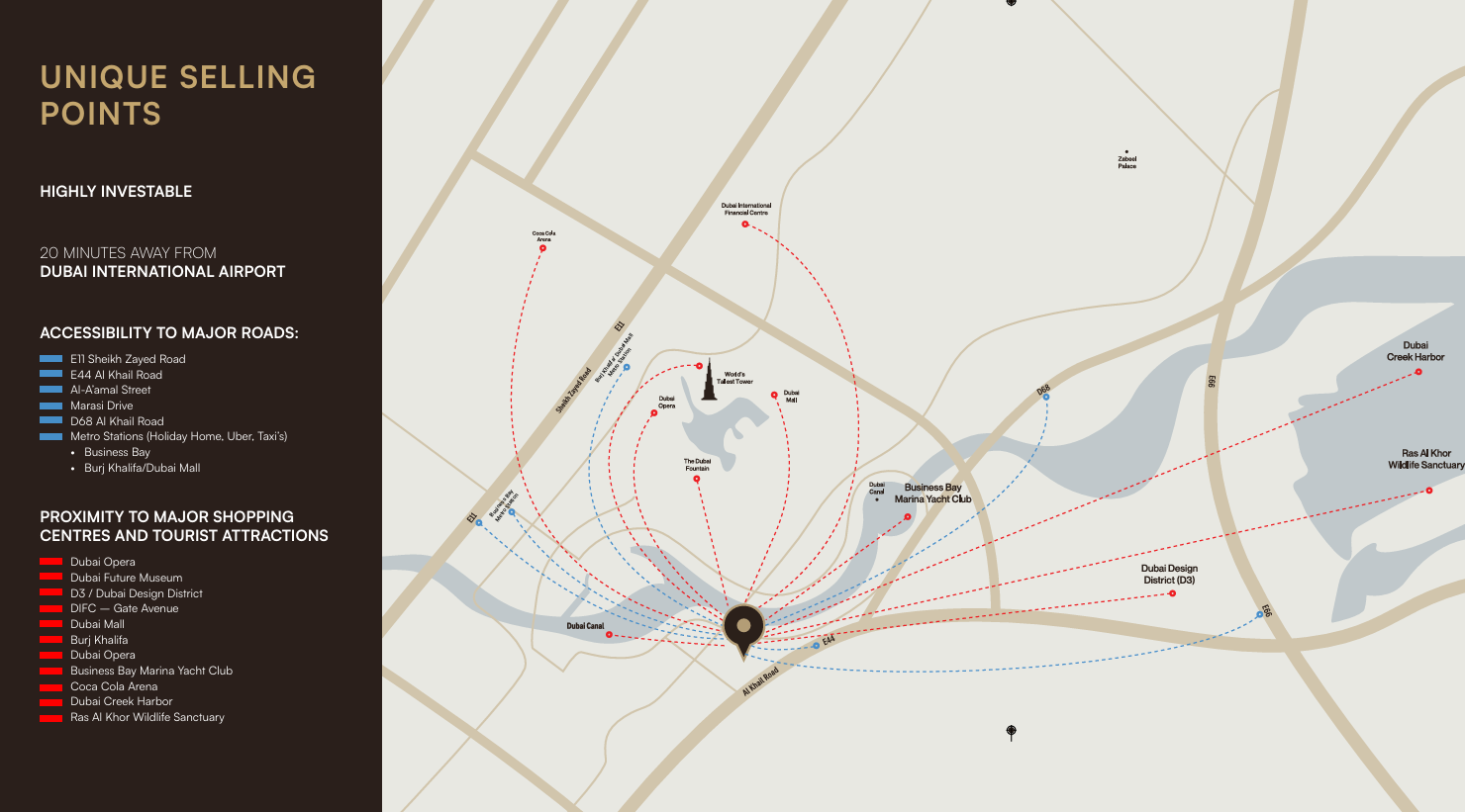Dank der ausgezeichneten Verkehrsanbindung erreichen Sie mit Leichtigkeit die nächste Haltestelle und die Autobahnauffahrt. Damit ist Business Bay ein idealer Ausgangspunkt, um die Stadt und die Umgebung zu erkunden.