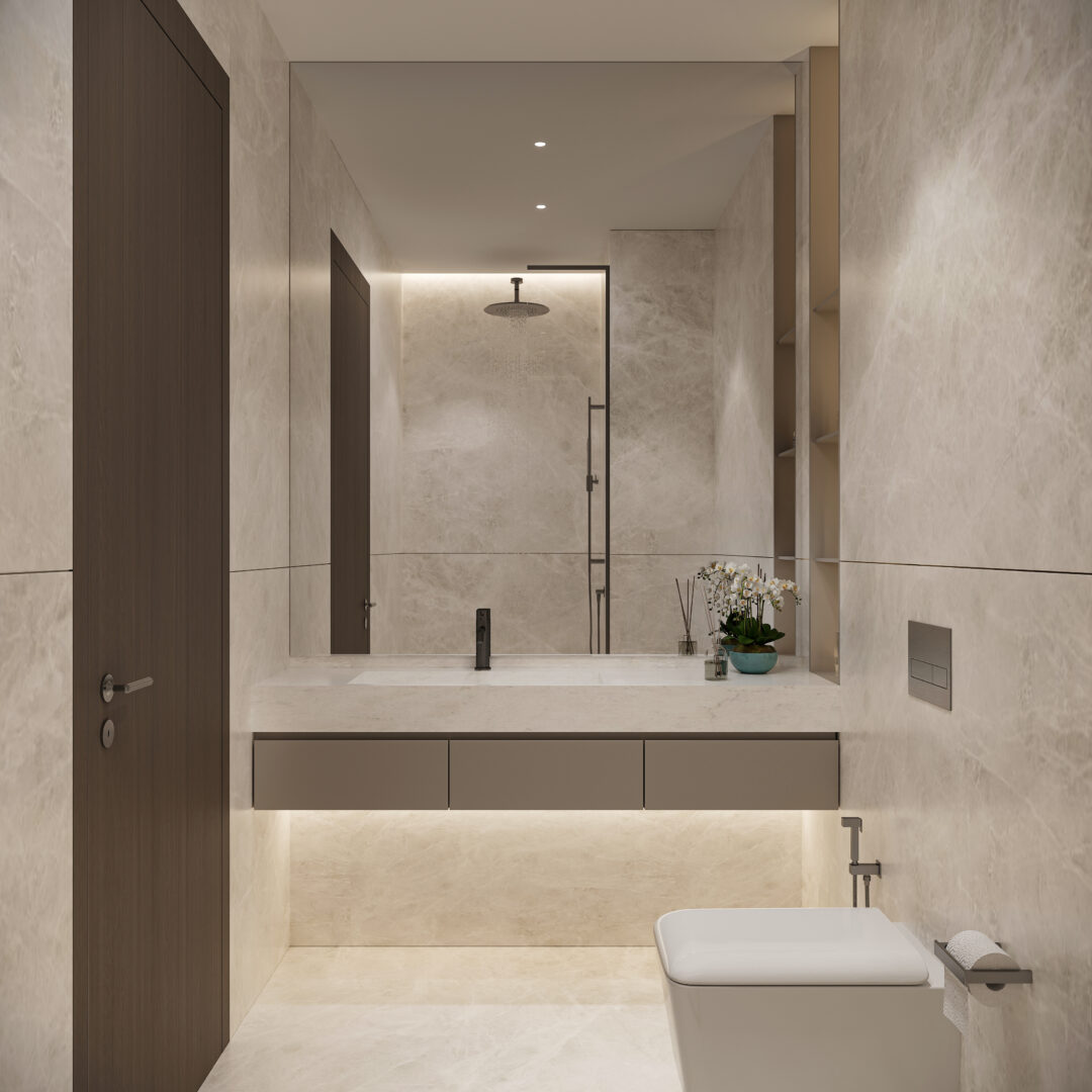 Erleben Sie das innovative Sunken Garden System, das für ein angenehmes Klima in Ihrer Wohnung sorgt. Entspannen Sie unter der Regendusche im Badezimmer und verstauen Sie Ihre Kleidung in den eingebauten Kleiderschränken.