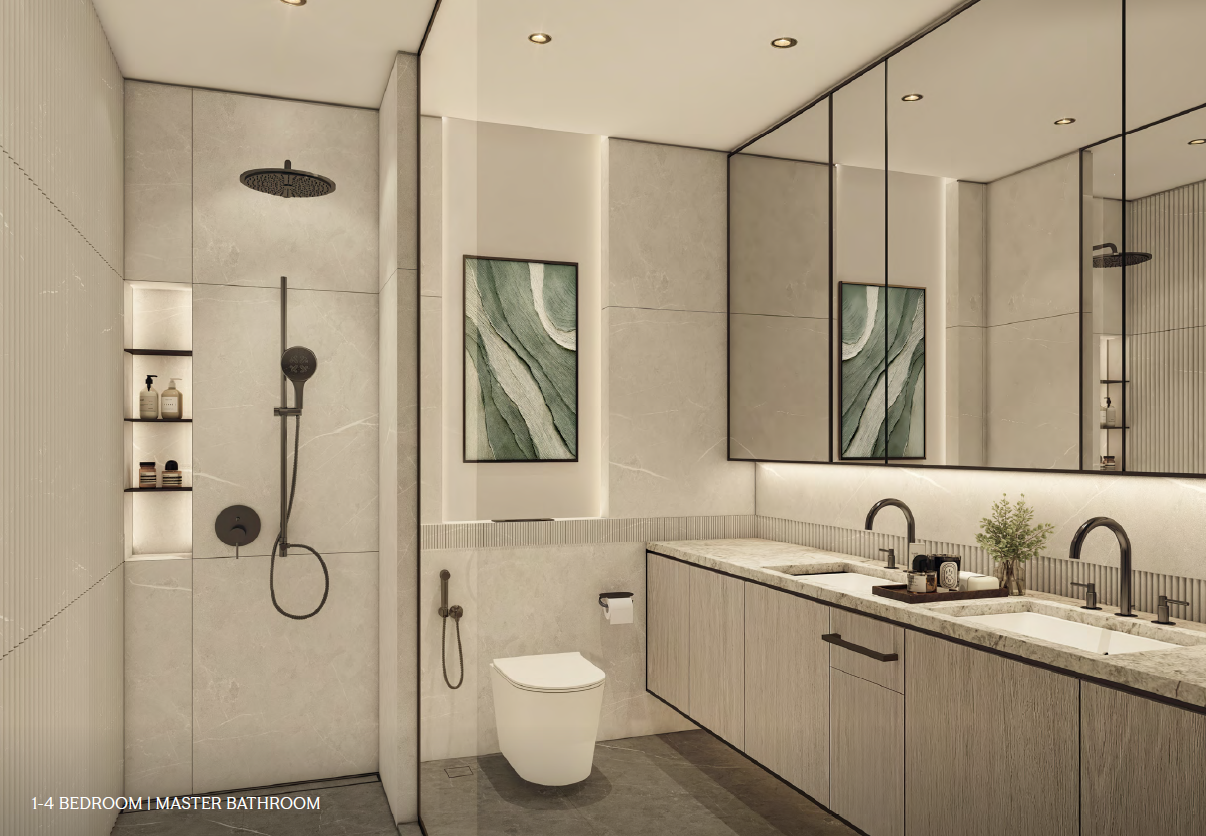 Der exklusive Poolbereich verfügt über einen separaten Kinderpool und Sonnenbänke sowie Cabanas zum Entspannen. Für gesellige Treffen stehen soziale Lounges und ein Entertainment-Raum zur Verfügung. Halten Sie sich fit im voll ausgestatteten Fitnessstudio oder entspannen Sie am Wasserfall des grandiosen Eingangsbereichs umgeben von Natur.