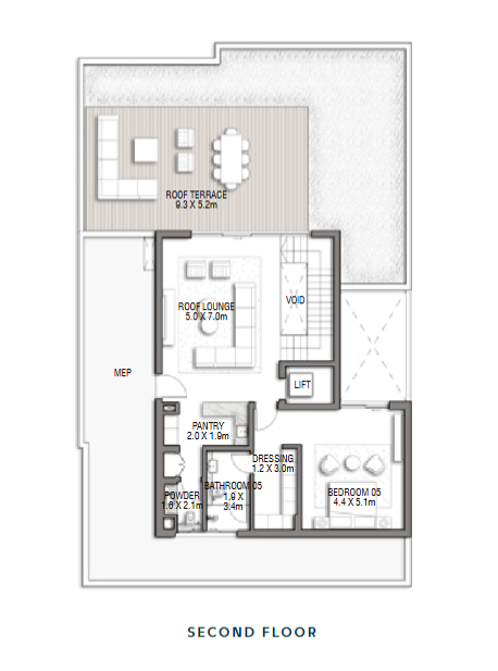 Auf der zweiten Etage erwartet Sie ein weiteres Schlafzimmer mit eigenem Badezimmer, eine Dachlounge und eine Dachterrasse, die Ihnen einen atemberaubenden Blick auf die Umgebung bietet.