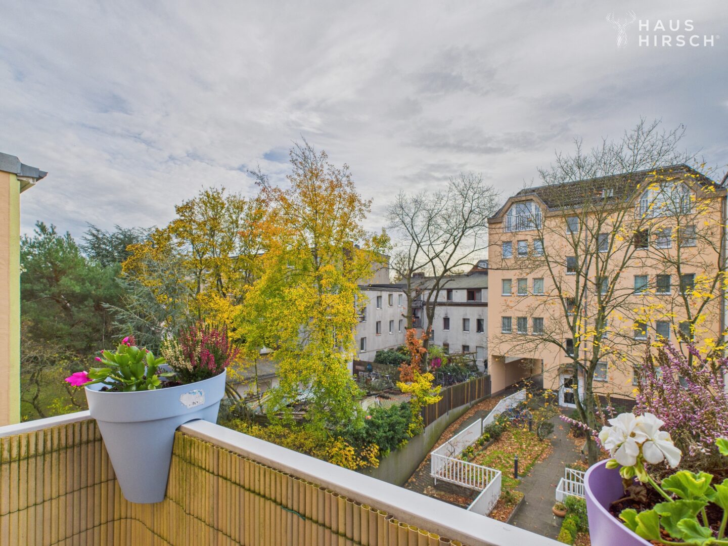 - Ausrichtung: Balkon mit Ausrichtung nach Süd-Westen in den begrünten Bereich.