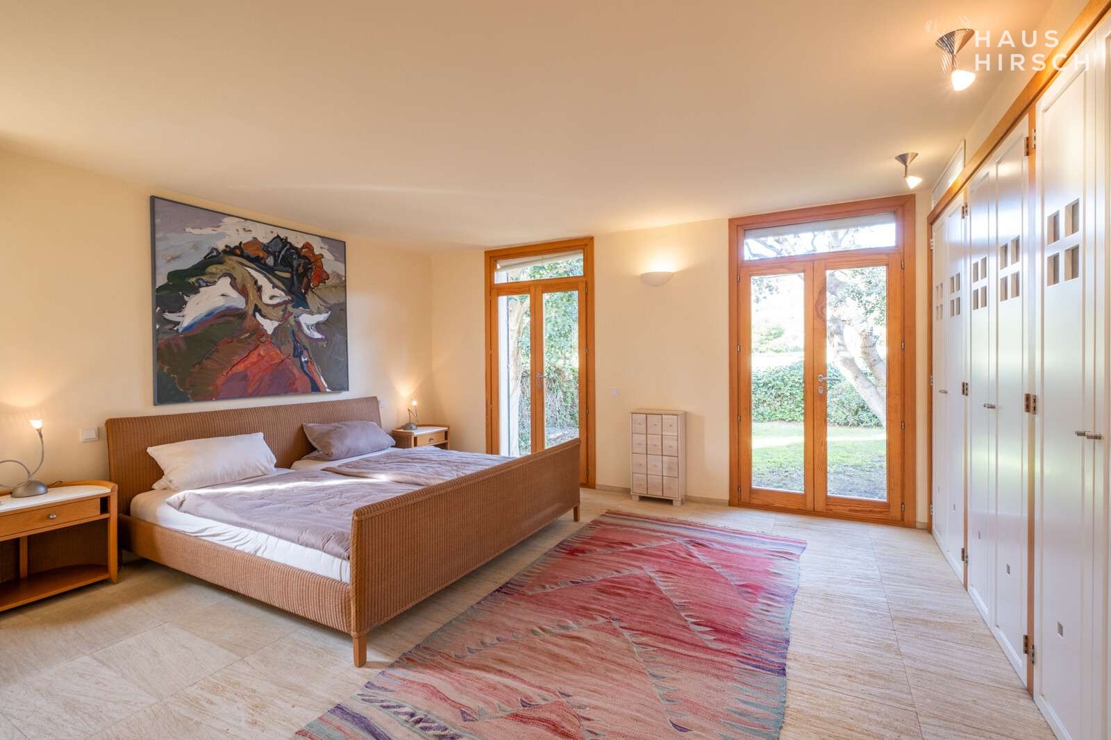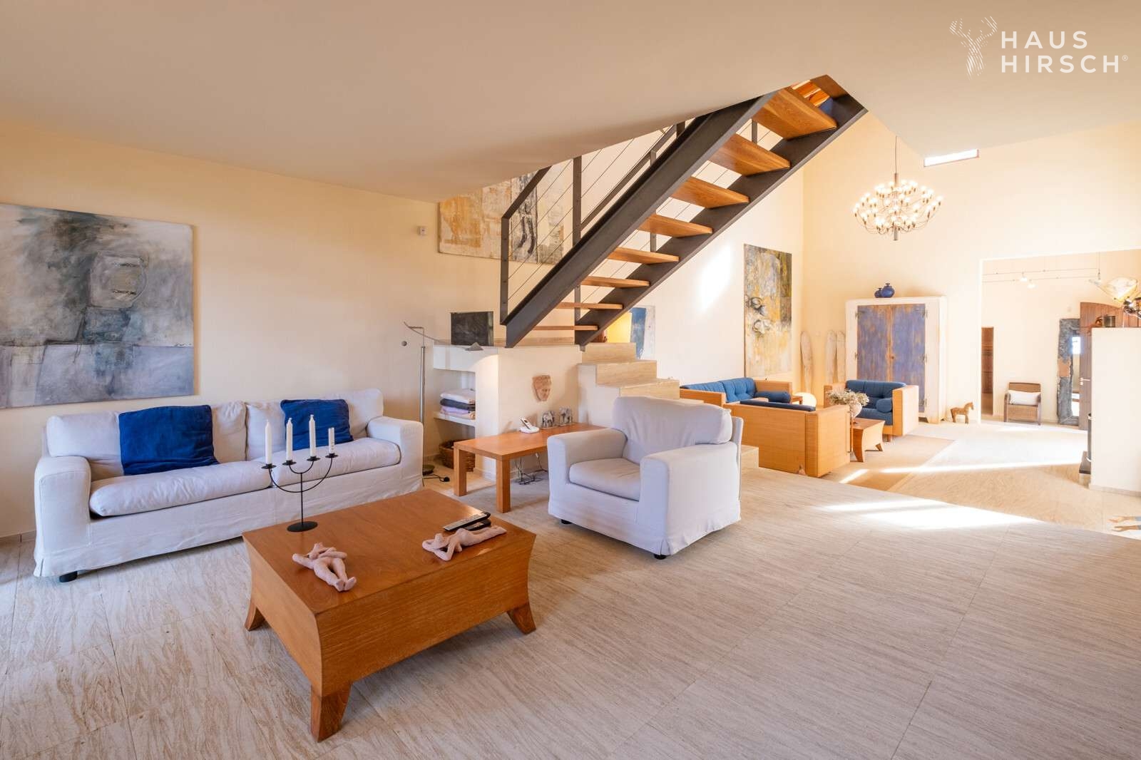 Umgeben von einem üppigen, mediterranen Garten mit großzügigem Poolbereich und mehreren idyllischen Terrassen, bietet die Villa einen perfekten Ort zum Entspannen und Genießen. Das durchdachte architektonische Konzept sorgt für lichtdurchflutete Räume, eine harmonische Verbindung von Innen- und Außenbereich und höchsten Wohnkomfort auf zwei Etagen.