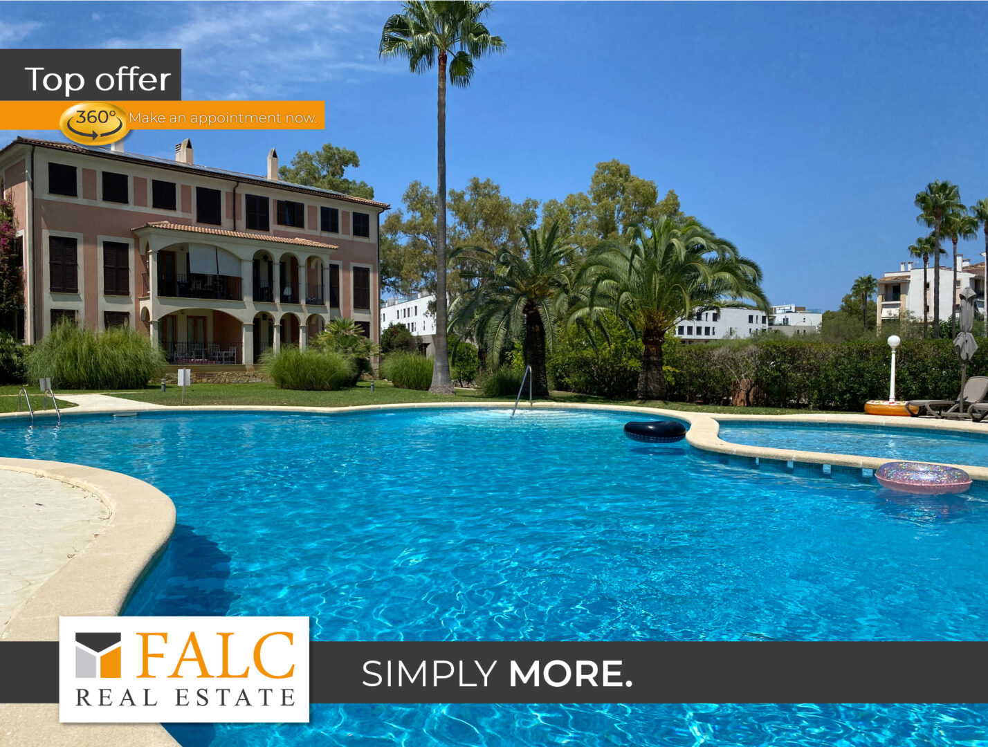 Santa Ponsa im Südwesten Mallorcas ist bekannt für seinen breiten Sandstrand, türkisfarbenes Wasser und eine hervorragende Infrastruktur. Internationale Schulen, Golfplätze, Yachthafen und zahlreiche Restaurants machen den Ort ganzjährig attraktiv. Das Zentrum von Palma erreichen Sie in ca. 20 Minuten mit dem Auto.
