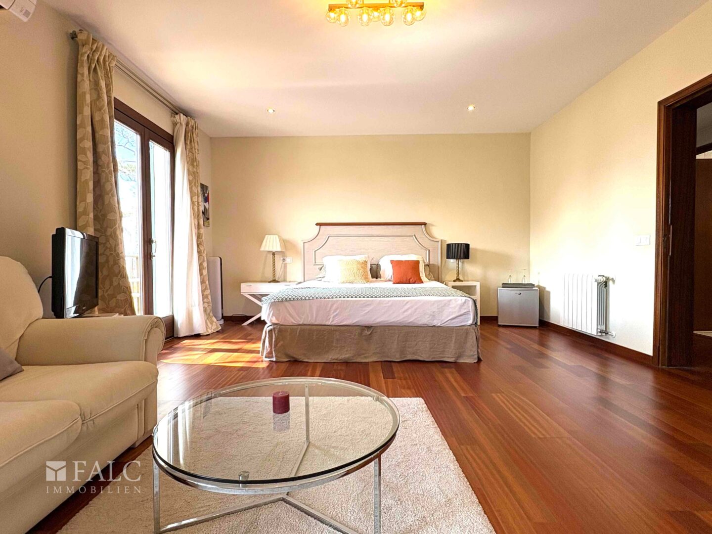 Für weiteren Wohnkomfort sorgen eine Klimaanlage mit Warm-Kalt-Funktion sowie eine effiziente Gaszentralheizung. Darüber hinaus stehen ein separater Abstellraum sowie eine Garage mit Platz für zwei kleine Fahrzeuge zur Verfügung – ein zusätzlicher Pluspunkt für praktischen Wohnkomfort.