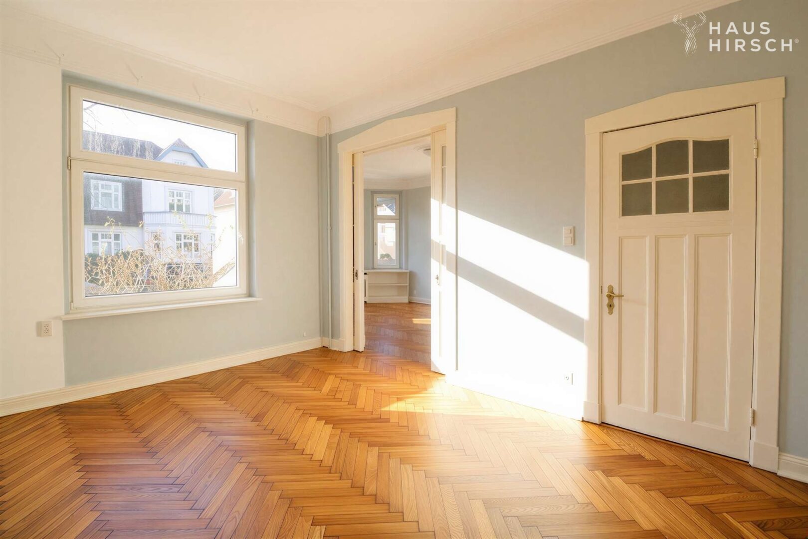 Die hier angebotene Erdgeschosswohnung vereint historischen Charme mit stets gepflegter Substanz und einem außergewöhnlichen Platzangebot im Grünen. Seit Mai 2024 ist das Gebäude rechtlich in drei abgeschlossene Einheiten unterteilt, wobei die Dachgeschosswohnung über eine eigene Gas-Etagenheizung verfügt und derzeit vermietet ist. Die hier angebotene Wohneinheit Nr. 1 besticht durch eine offizielle Wohnfläche von 105,31 m², die sich auf vier großzügige Zimmer, Küche, Bad, Flur und zwei Terrassen verteilt. Beeindruckende Deckenhöhen von ca. 3,12 Metern, original erhaltene Pitchpine-Dielen und Eichenparkettböden die erst 2024 fachgerecht geschliffen und geölt wurden, verleihen der Wohnung eine edle Altbau-Atmosphäre.