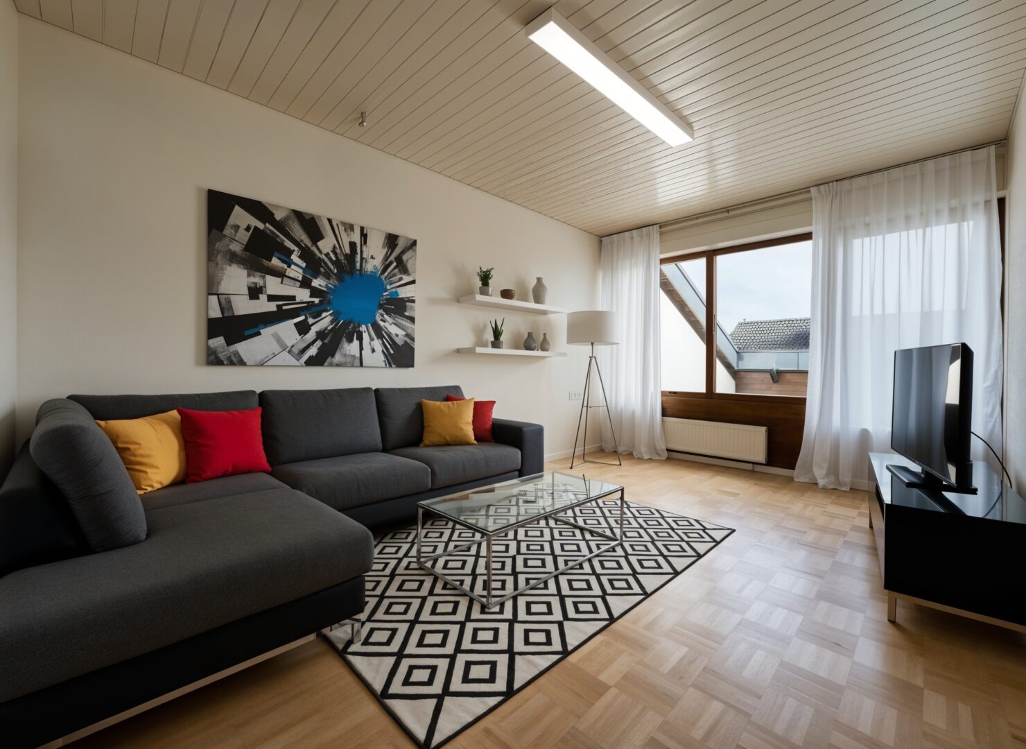 - 4 Velux-Dachflächenfenster mit Sonnenschutz, 2 davon fernsteuerbar mit Regensensor aus 2024