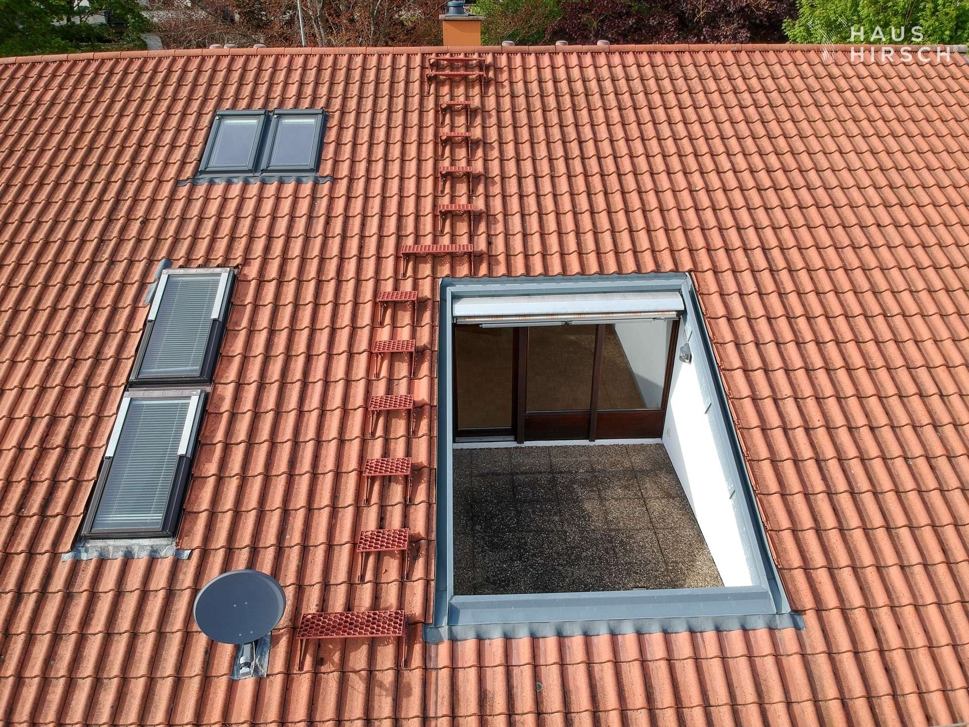 - Dachterrasse (ca. 10,3 m²) mit Markise, zugänglich von zwei Räumen