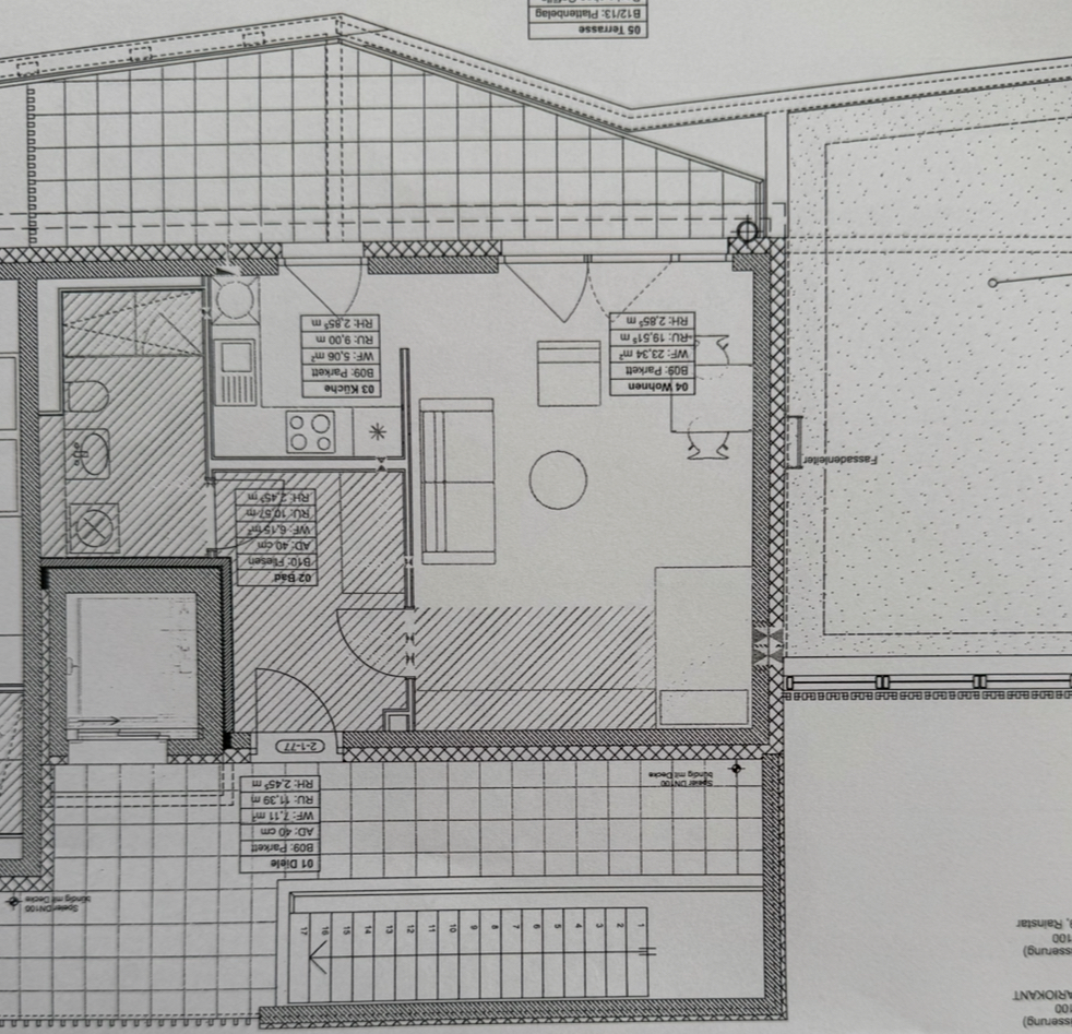 Ein großzügiger, offener Wohn- und Schlafbereich mit direktem Zugang zum großen Balkon, ein modernes Badezimmer sowie ein kleiner Vorraum, der Platz für Garderobe bietet. Durch die Lage im obersten Geschoss genießen Sie nicht nur viel Tageslicht, sondern auch eine angenehme Aussicht und Privatsphäre.