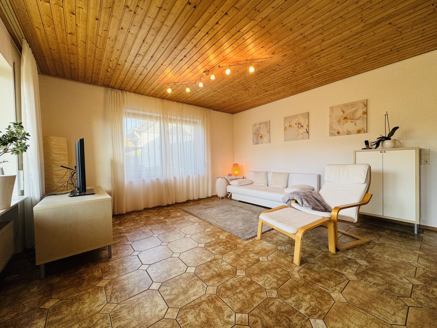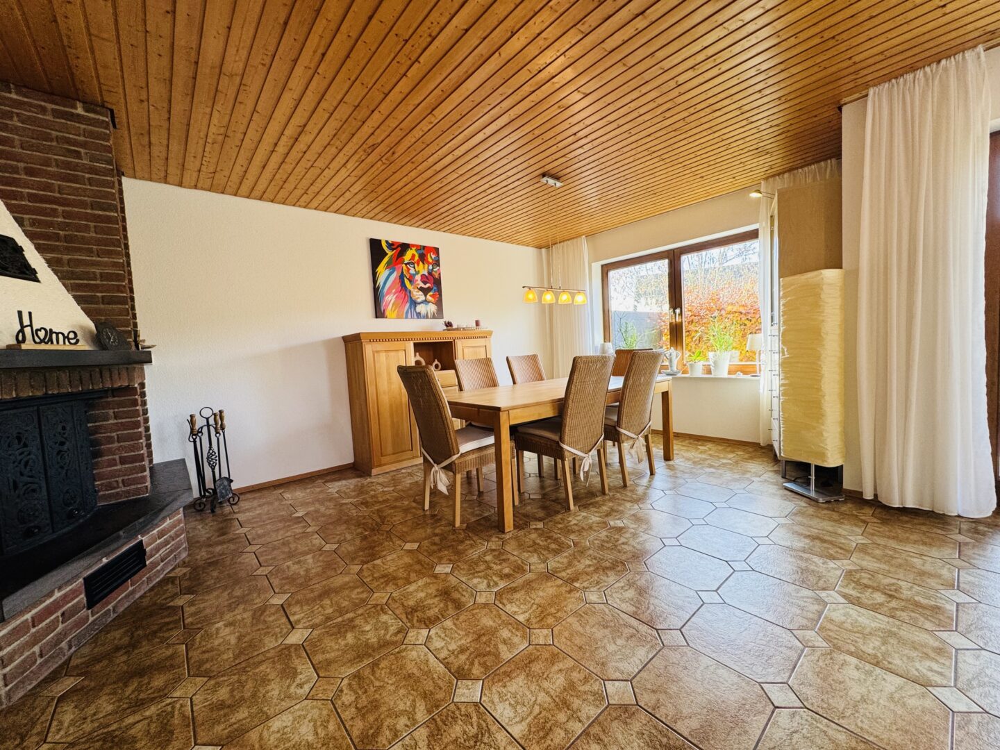 - Öl-Heizung und zusätzlicher Holzofen im Wohnzimmer für effiziente Wärme