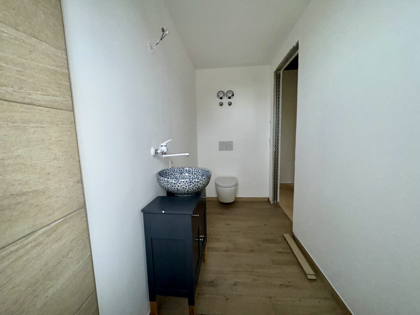 - Zeitgenössische Fliesen und Armaturen in den Bädern