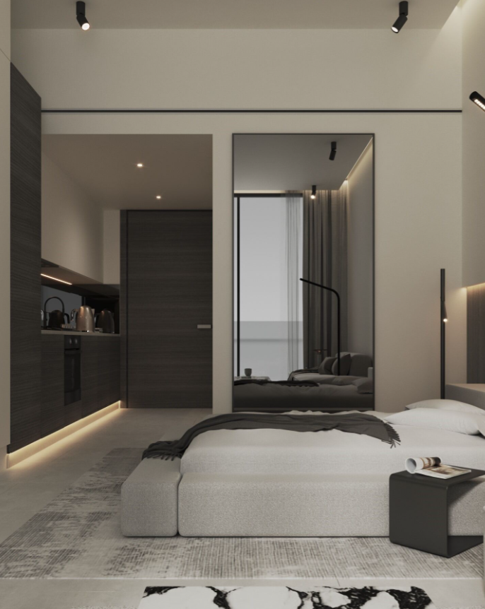 Willkommen in diesem einzigartigen Studio-Apartment mit dem atemberaubenden European contemporary interior design by Ecru Design Studio. Diese exklusive Einrichtung garantiert ein modernes und stilvolles Wohnambiente für Singles, die auf der Suche nach einem urbanen Rückzugsort sind, sowie für Investoren, die nach einer attraktiven Immobilie mit hohem Wertsteigerungspotenzial suchen. In diesem Apartment erwartet Sie eine geschmackvolle Ausstattung, die höchsten Ansprüchen gerecht wird. Entdecken Sie die hochwertigen Materialien, die durchdachte Raumaufteilung und das harmonische Farbkonzept, das für eine elegante Atmosphäre sorgt. Diese Wohnung ist mehr als nur ein Ort zum Wohnen - es ist ein Ort zum Wohlfühlen und Genießen. Willkommen zu Ihrem neuen Zuhause oder Investmentobjekt!