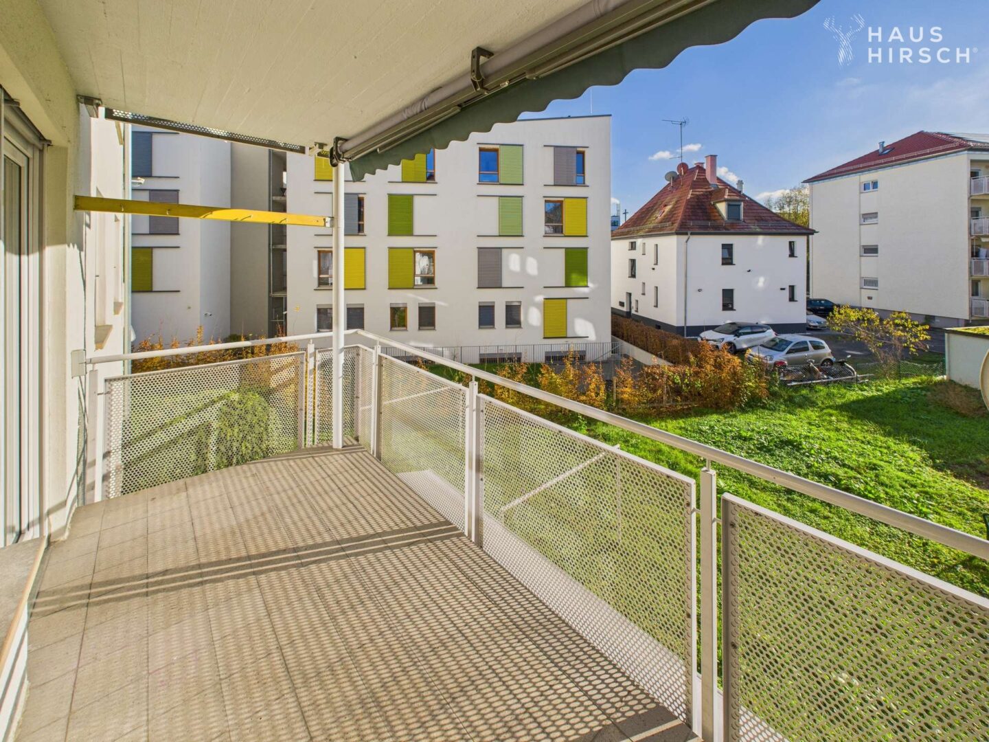 Der schöne Süd-/Südostbalkon mit Markise lädt zum Entspannen ein und bietet einen Blick auf das gepflegte Wohnumfeld.