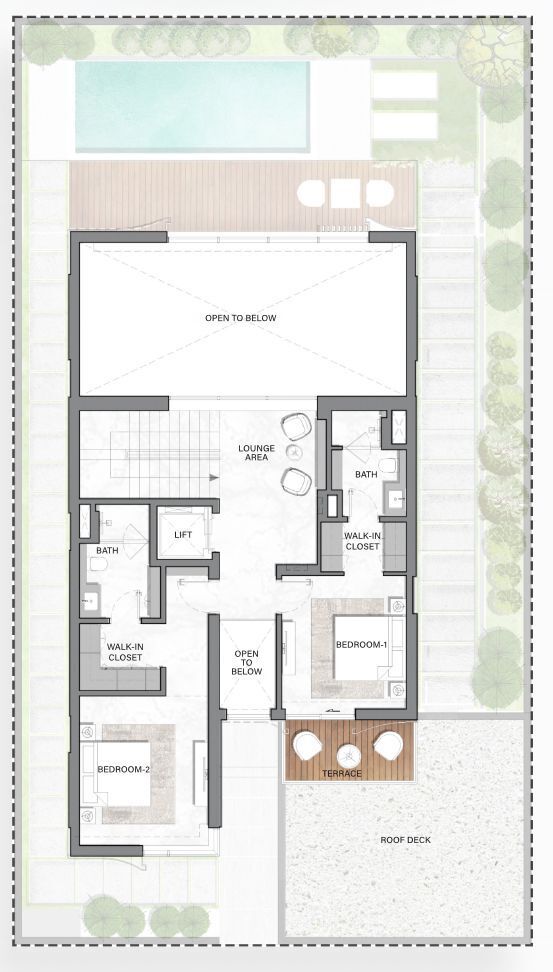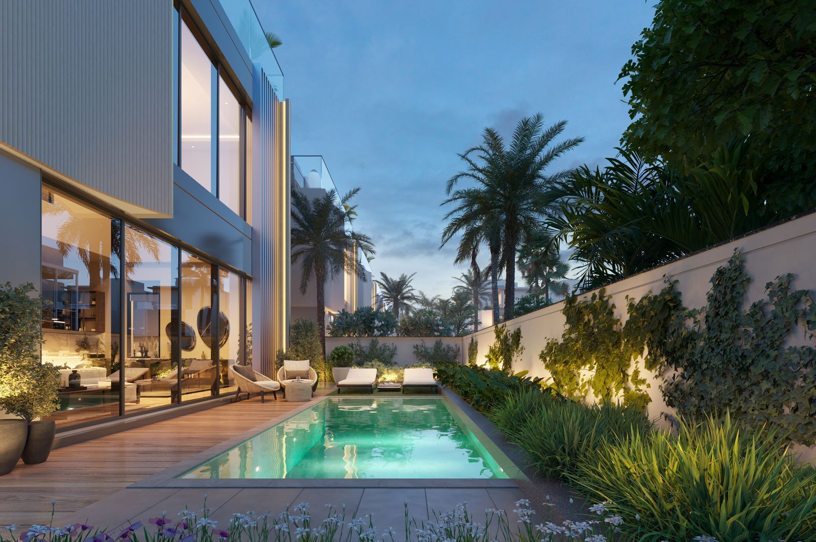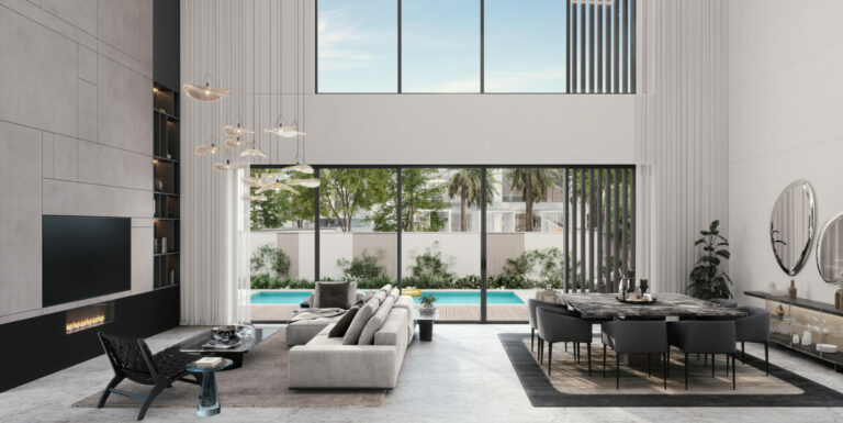 Die Villa bietet zudem eine Vielzahl von Annehmlichkeiten wie eine Doppelgarage, eine Terrasse auf der Garage, eine Dachterrasse, einen Pool und wärmeisolierte Fensterpaneele zur Minimierung der Wärme- und Schallübertragung. Die Smart-Home-Technologie steuert die Beleuchtung und Klimaanlage, während das schalldichte Entwässerungsrohrsystem für Ruhe sorgt.