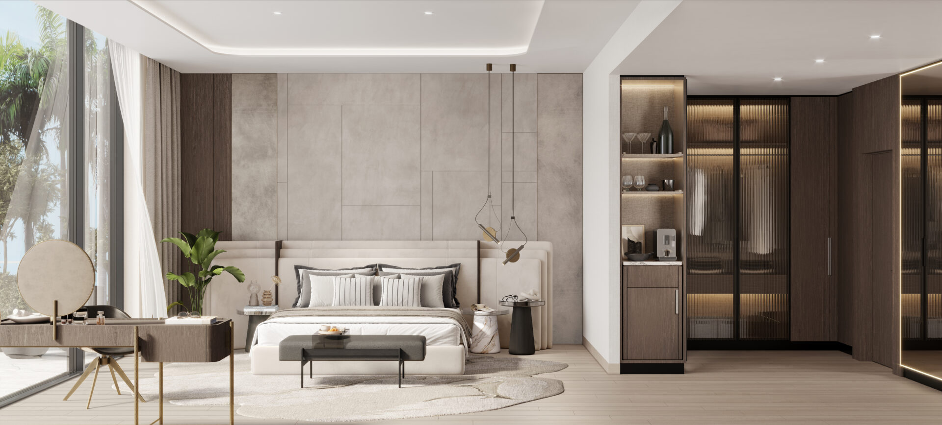 Die Villa beeindruckt mit einer offenen Show Küche, die mit einer separaten Vorbereitungsküche ausgestattet ist. Hier finden Sie hochwertige Gaskochfelder, verdeckte Dunstabzüge und erstklassige Einbaugeräte einer renommierten Marke. Die Küche bietet zudem eine hochwertige Küchenarbeitsplatte, Wasserhähne und verschiedenes Zubehör für Ihre täglichen Kochbedürfnisse.