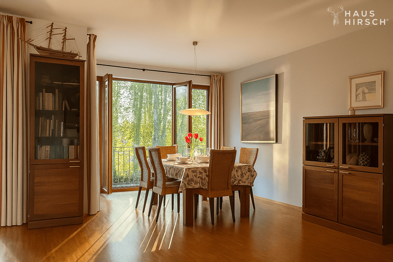 Ein weiterer Pluspunkt dieser Immobilie ist ihre außergewöhnlich flexible Grundrissgestaltung: Bei Bedarf lässt sich die bestehende Drei-Zimmer-Wohnung um ein bis zwei zusätzliche Räume erweitern – so kann aus einer Drei-Zimmer- eine großzügige Fünf-Zimmer-Wohnung entstehen. Damit passt sich das Raumkonzept Ihren individuellen Lebensumständen und Bedürfnissen perfekt an – ob Familie, Homeoffice oder Gästezimmer.