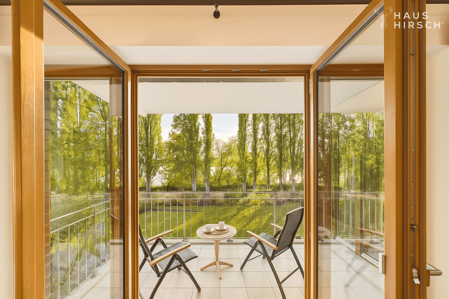 Bodentiefe, doppelt verglaste Holzfenster durchfluten die Räume mit natürlichem Licht und eröffnen einen wunderschönen Blick ins Grüne. Besonders hervorzuheben ist die einmalige Lage der Wohnung: Sie befindet sich in erster Reihe zum Rummelsburger See und bietet Ihnen einen unverbaubaren, nicht einsehbaren Blick auf das glitzernde Wasser – ein Panorama, das Ihnen täglich ein Gefühl von Weite und Ruhe schenkt.