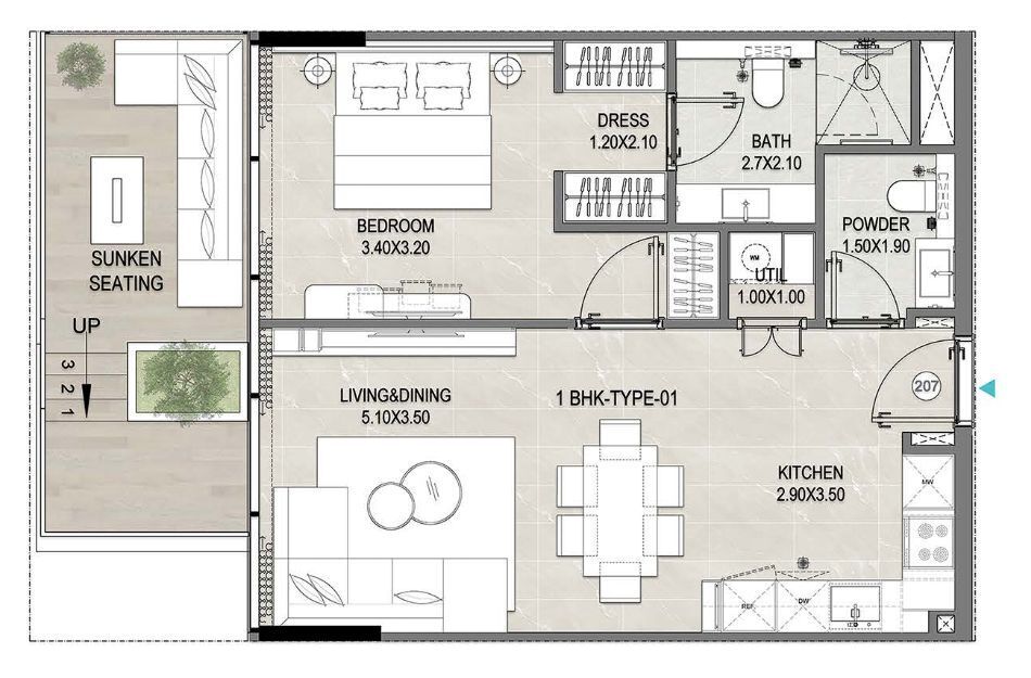 Erleben Sie Wohnen auf höchstem Niveau in dieser exquisiten 1-Schlafzimmer-Immobilie und lassen Sie sich von all den luxuriösen Details und Annehmlichkeiten begeistern. Willkommen zu Hause!