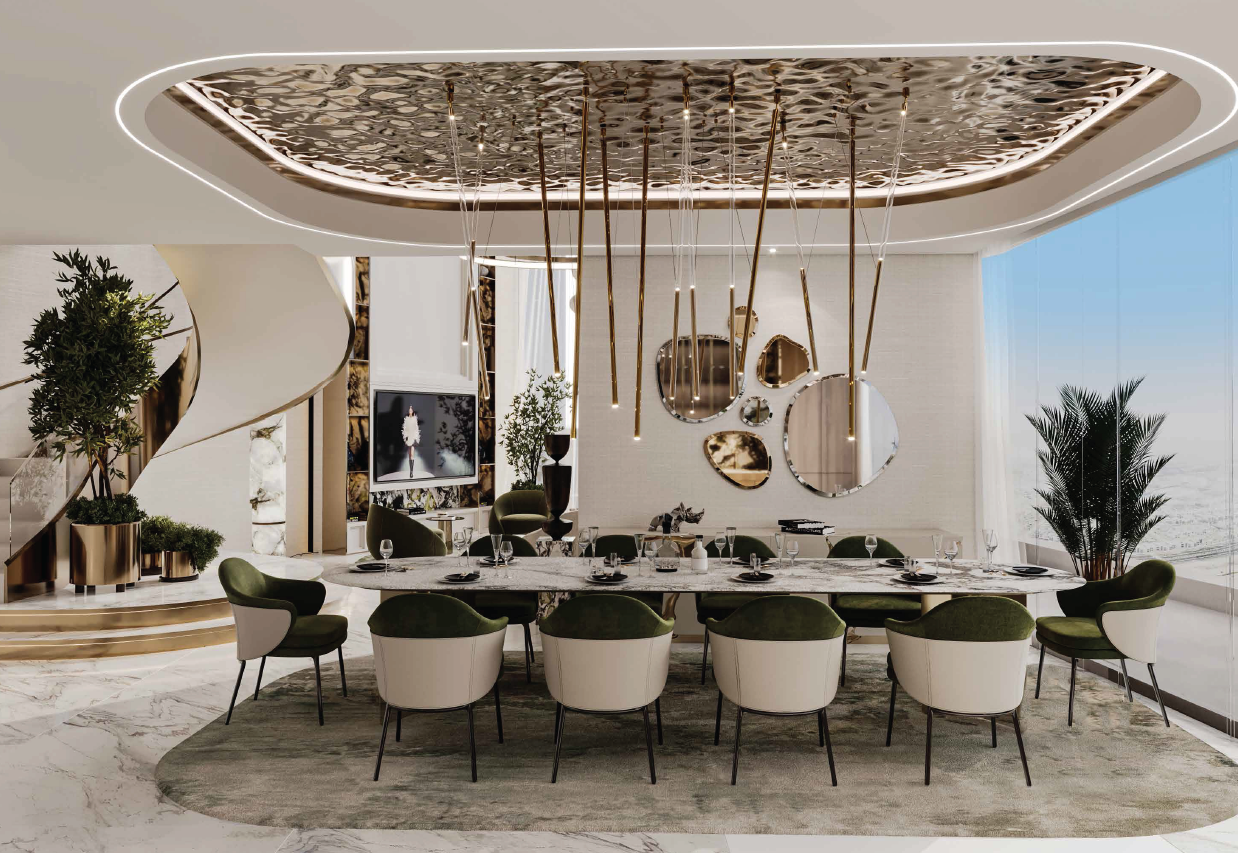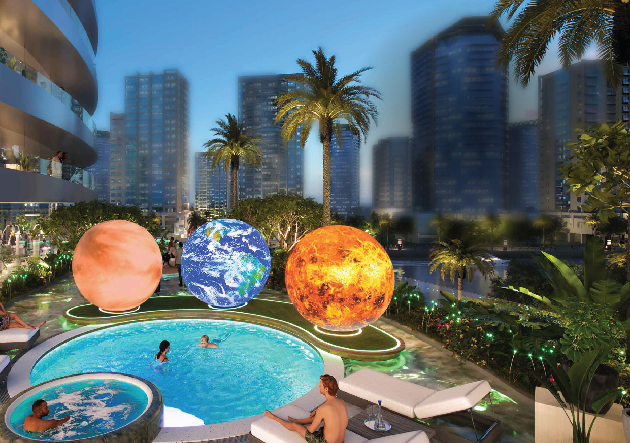 Diese Immobilie bietet mit einer Gesamtfläche von 861 m² reichlich Platz für komfortables Wohnen. Die Annehmlichkeiten und Einrichtungen sind wirklich beeindruckend, darunter ein Infinity-Pool, ein Aqua-Fitnessbereich, ein voll ausgestattetes Fitnesscenter und ein einzigartiger, vom Planeten inspirierter Dachgarten. Die Aussichtsplattform mit Teleskop bietet einen einzigartigen Aussichtspunkt, um die Schönheit der Umgebung zu bewundern.