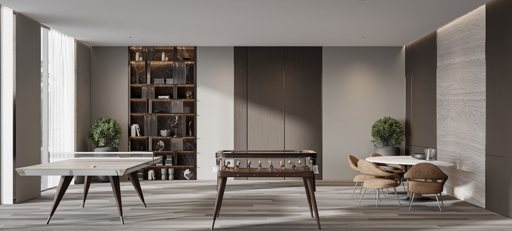Für die Sportbegeisterten gibt es einen Außenbereich für verschiedene Sportarten und Jogging-Trails für Ihre tägliche Fitnessroutine. Die Spielezone bietet Unterhaltungsmöglichkeiten für Jung und Alt und die Strand- und Loungezone lädt zum Entspannen ein.