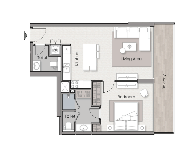Willkommen in Ihrem neuen Zuhause! Diese ein-Zimmer-Wohnung bietet nicht nur einen gemütlichen Rückzugsort, sondern auch großartige Annehmlichkeiten für Singles und Investoren. Die Wohnung verfügt über eine moderne Küche mit hochwertigen Geräten, ein geräumiges Wohnzimmer mit viel Tageslicht, ein stilvolles Badezimmer und einen Balkon mit Blick auf die Stadt. Die großartigen Annehmlichkeiten des Gebäudes umfassen einen Fitnessraum, einen Pool, eine Gemeinschaftslounge und einen Concierge-Service. Genießen Sie das urbane Leben in dieser perfekt ausgestatteten Wohnung!