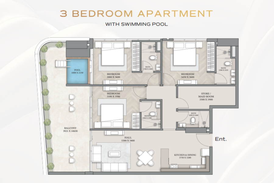 Entdecken Sie Ihr Traumhaus in dieser exquisiten 147,84 m² großen Wohnung, die sich perfekt für den Erstbezug eignet. Diese anspruchsvolle Immobilie verfügt über vier Zimmer, darunter drei großzügige Schlafzimmer und drei luxuriöse Badezimmer, die reichlich Platz für Komfort und Privatsphäre bieten.