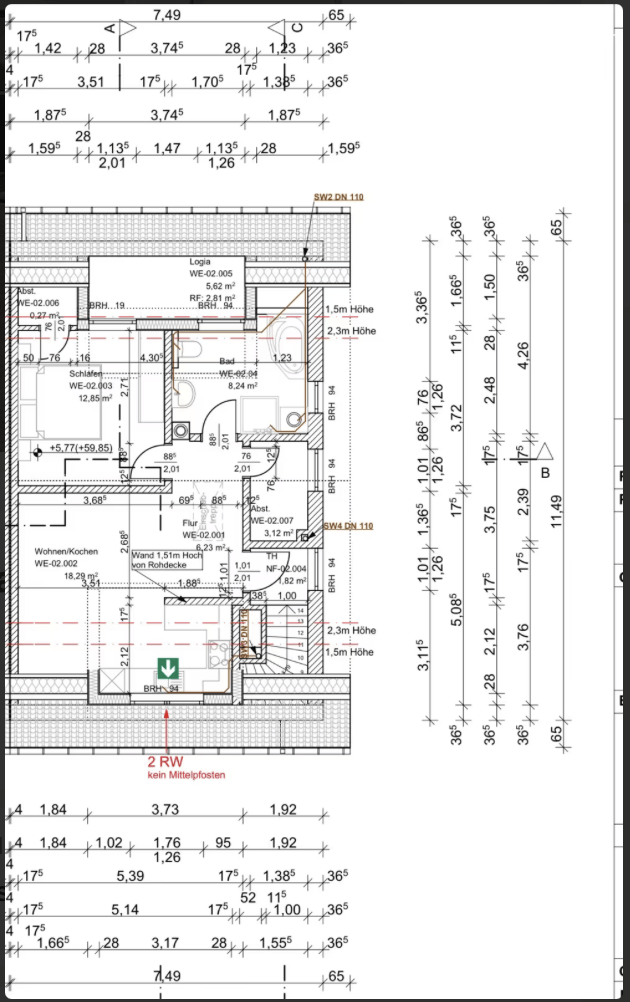 Im Dachgeschoss befindet sich eine separate Einliegerwohnung mit ca. 48 m² Wohnfläche und eigenem Zugang. Die Einheit ist derzeit unbefristet vermietet und bietet somit eine attraktive zusätzliche Einnahmemöglichkeit.