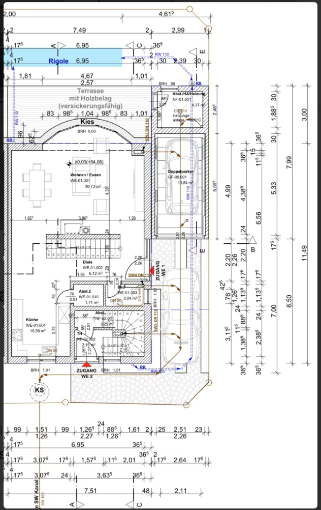 - Entwässerung über eine gemeinsam genutzte Rigole