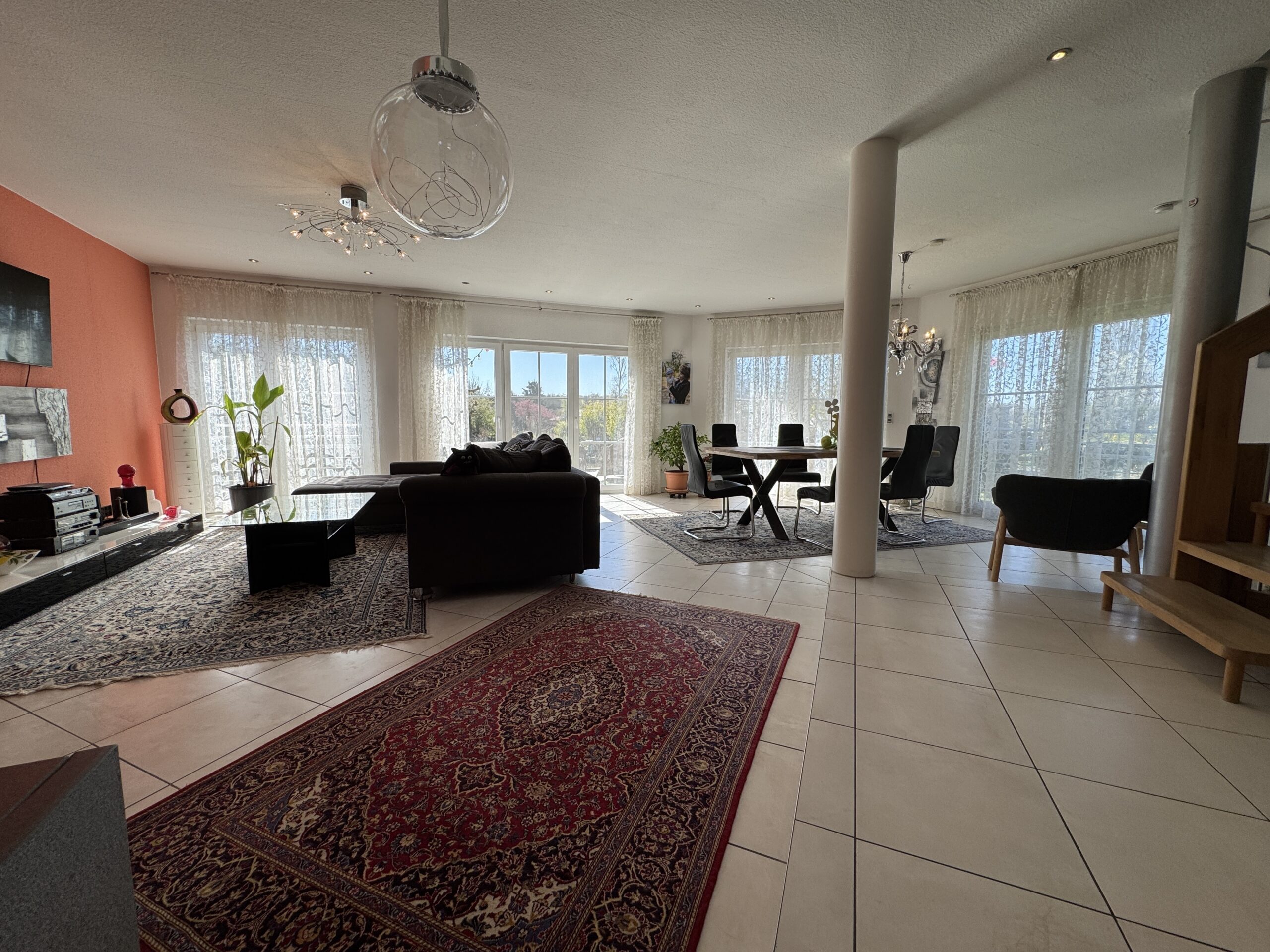 Schon beim Betreten dieses Hauses spüren Sie die einladende Atmosphäre, die durch helle, offene Räume und großzügige bodentiefe Fenster entsteht.