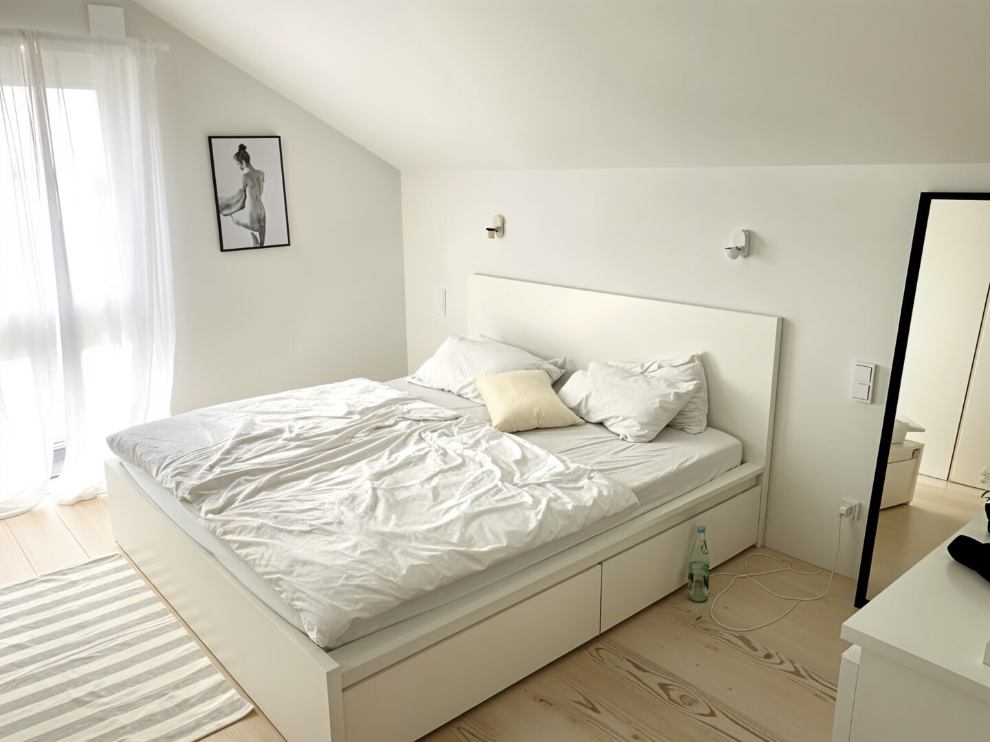 Die lichtdurchfluteten vier Zimmer, darunter drei Schlafzimmer, ein modernes Tageslichtbad sowie ein zusätzliches Gäste-WC, überzeugen durch ihre klare Architektur und ein harmonisches Farb- und Materialkonzept. Die offene Gestaltung von Wohn- und Essbereich schafft ein einladendes Raumgefühl – perfekt für gesellige Abende oder entspannte Stunden im Kreise der Familie.