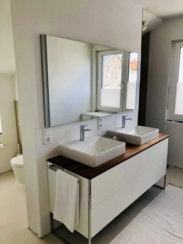 Im gesamten Haus wurde ein edler Massivholz-Dielenboden verlegt, der nicht nur optisch, sondern auch haptisch höchsten Wohnkomfort bietet. Die Immobilie ist mit hochwertiger Markenausstattung versehen – sowohl im Sanitärbereich als auch in der maßgefertigten Einbauküche, die mit Top-Geräten ausgestattet ist.