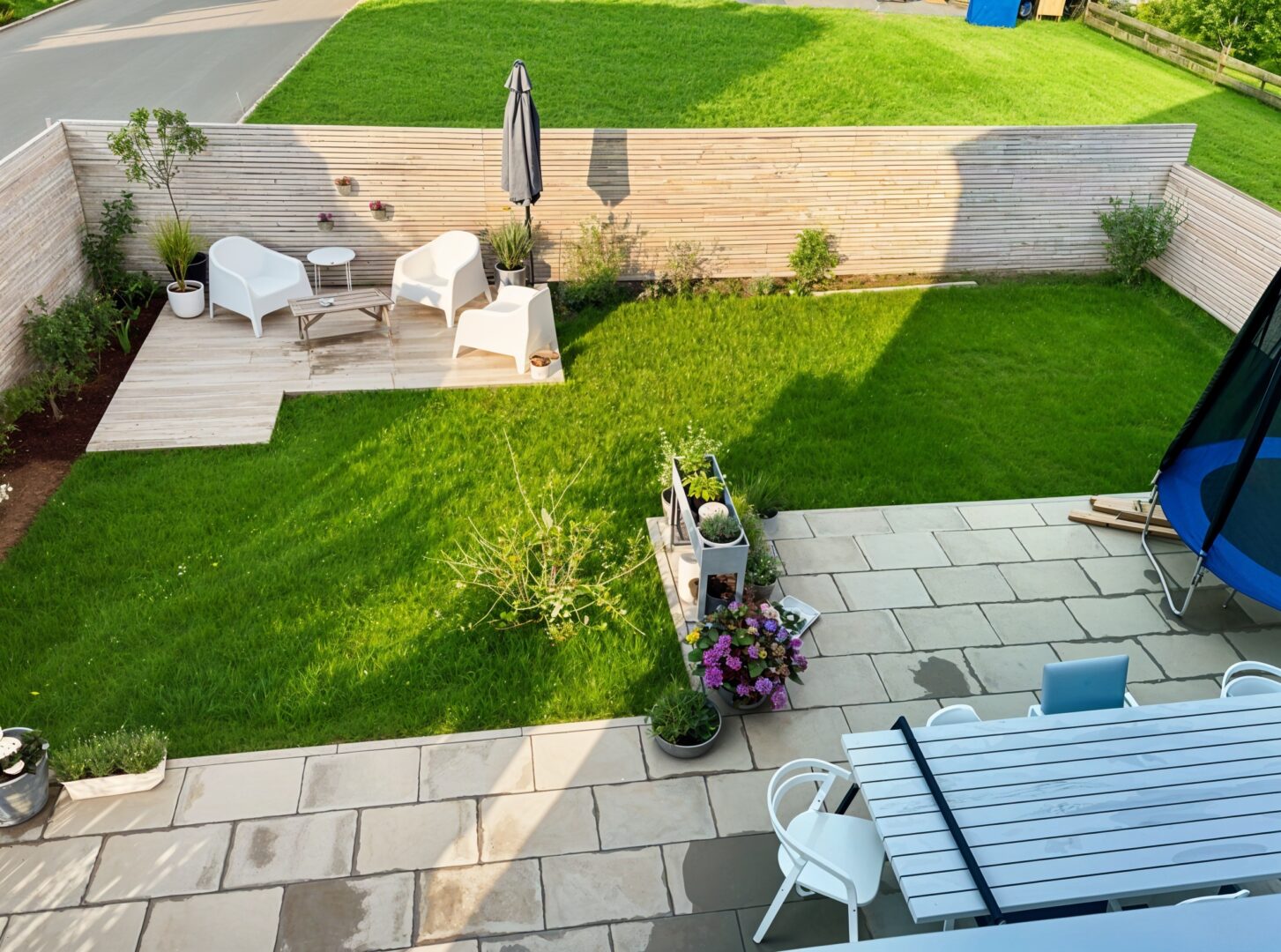 Das 342 m² große Grundstück mit gepflegtem Garten bietet Platz zum Spielen, Entspannen oder Gärtnern. Die 50 m² große Terrasse lädt zum Frühstück in der Morgensonne oder zum gemütlichen Grillabend ein.