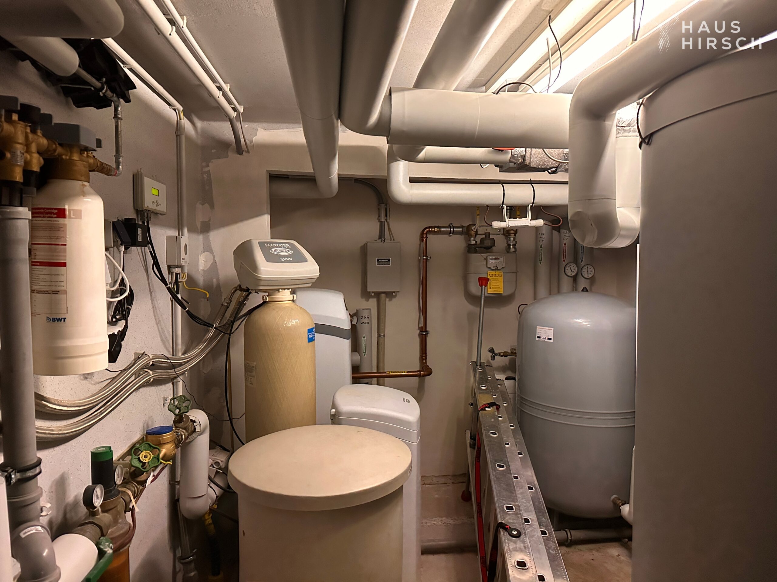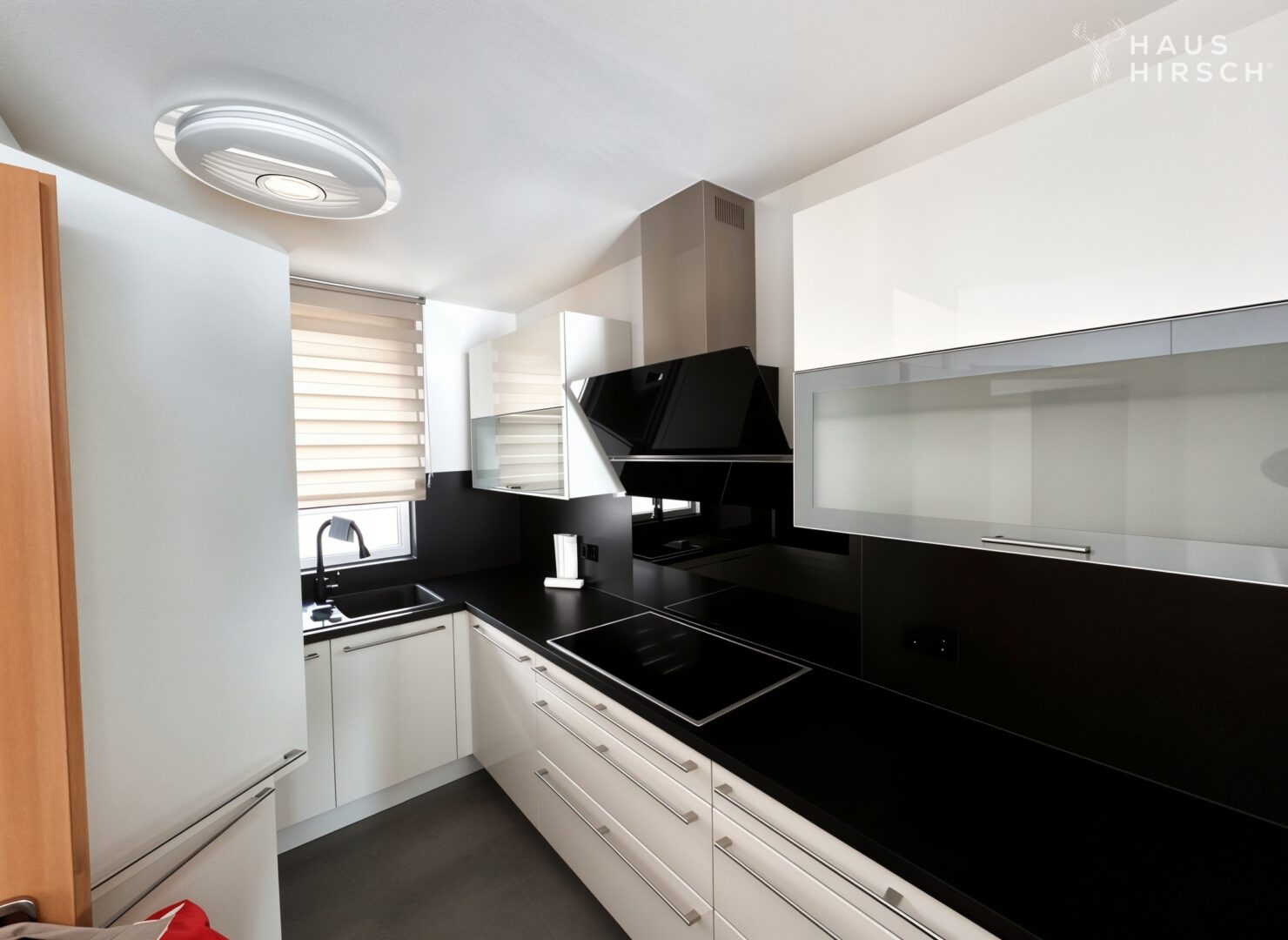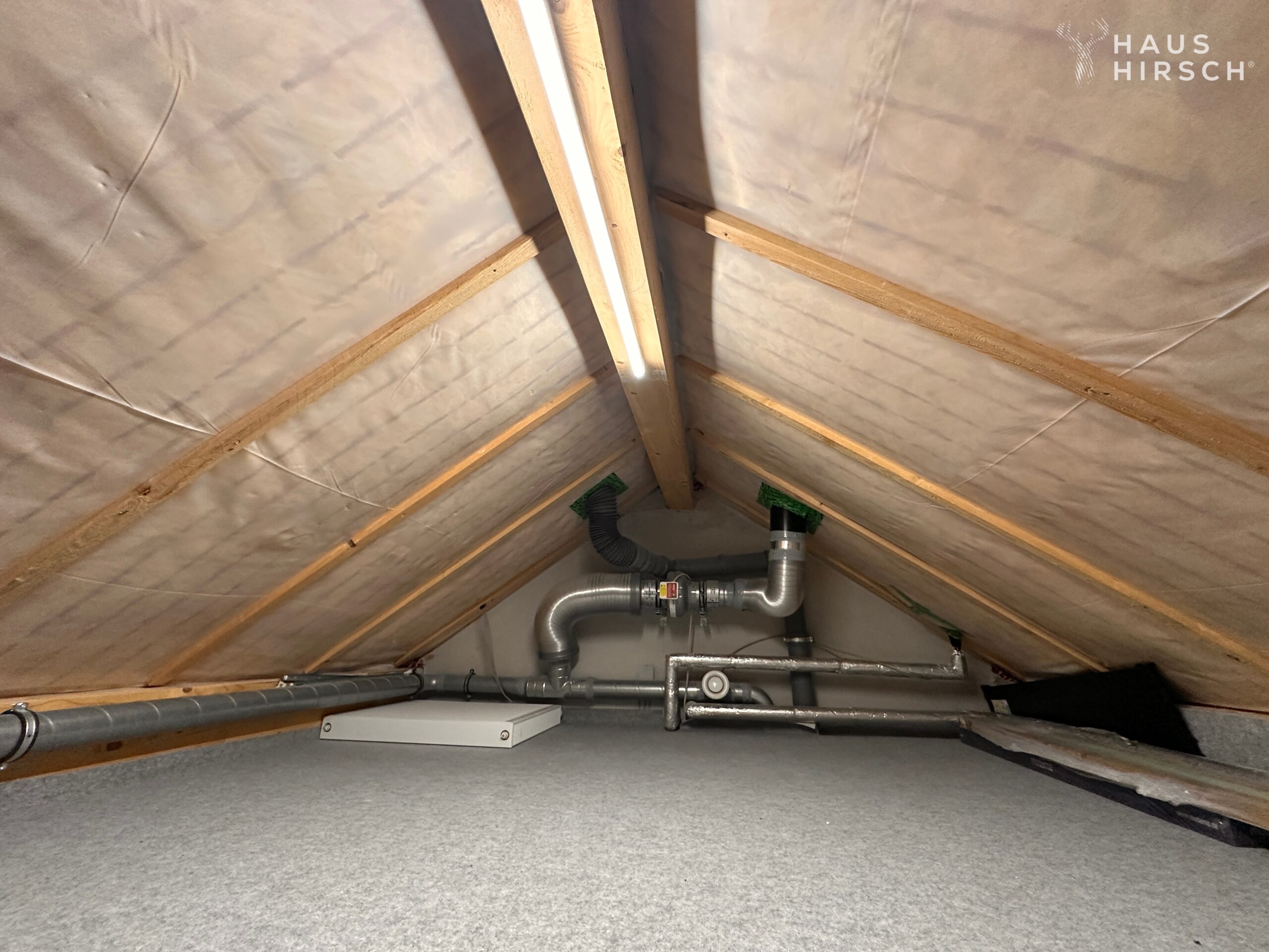 Das Herzstück des Hauses ist der lichtdurchflutete Wohnbereich mit einem gemütlichen Kamin, der an kalten Tagen für eine behagliche Atmosphäre sorgt. Die gehobene Innenausstattung zieht sich durch alle fünf Zimmer und zwei modern gestaltete Badezimmer sowie ein separates Gäste-WC.