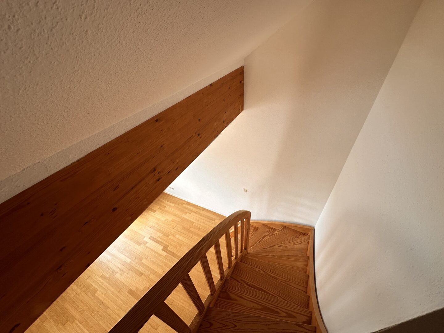 Obere Ebene : Über die Treppe gelangen Sie in Ihren Rückzugsort. Das großzügige Elternschlafzimmer bietet viel Ruhe und Raum zur Entfaltung. Das angrenzende, helle Galerie-Zimmer eignet sich perfekt als repräsentativer Home-Office-Bereich, Bibliothek oder kreative Hobby-Ecke.