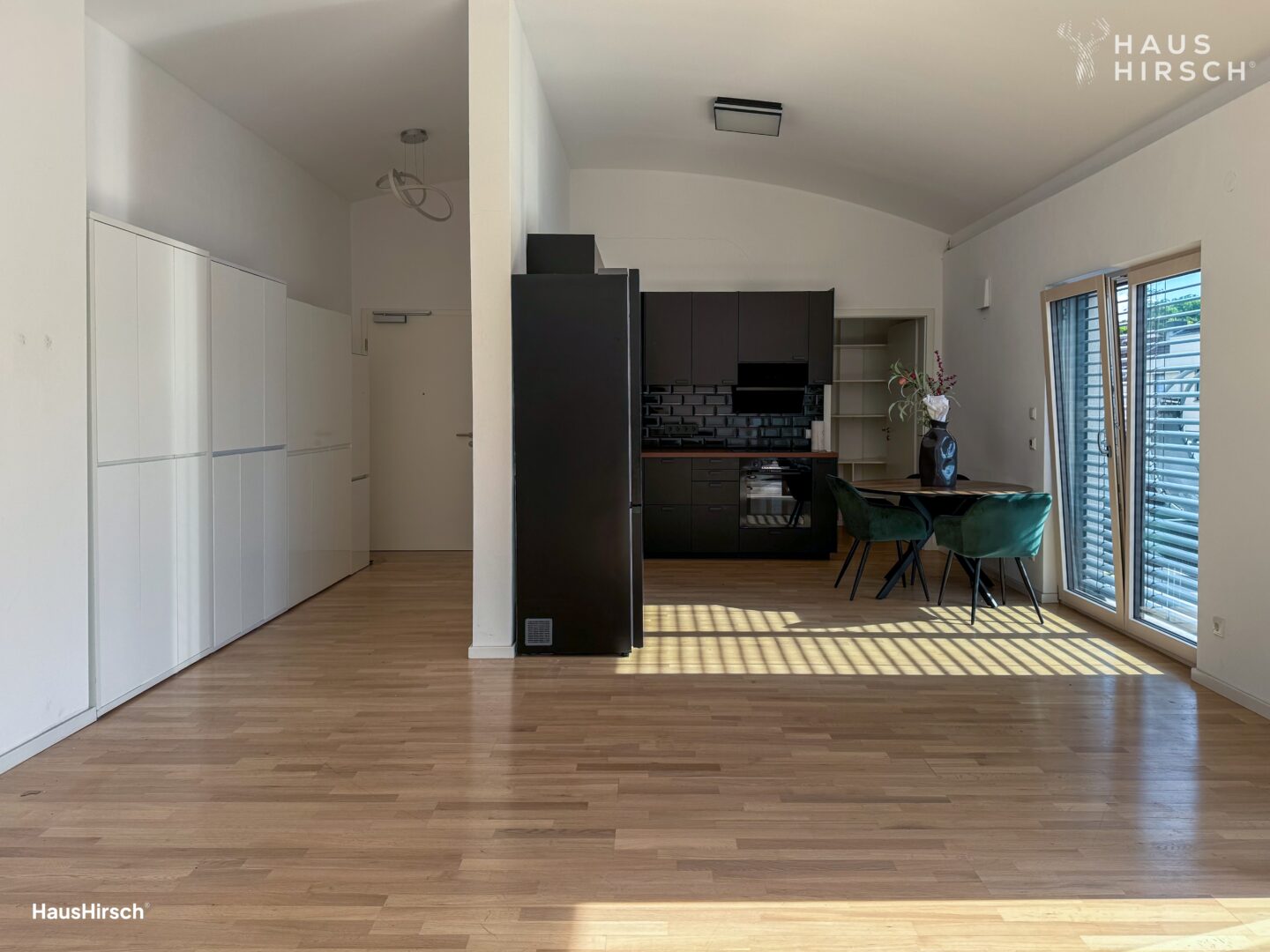 Der Wohn- und Essbereich mit offener Küche ist das Herzstück der Wohnung. Hier verschmelzen Funktionalität und Lifestyle: eine maßgeschneiderte Einbauküche mit Kochinsel und hochwertigen Geräten, viel Platz für gesellige Runden und der direkte Zugang zur spektakulären Dachterrasse machen diesen Bereich zum Mittelpunkt des täglichen Lebens.