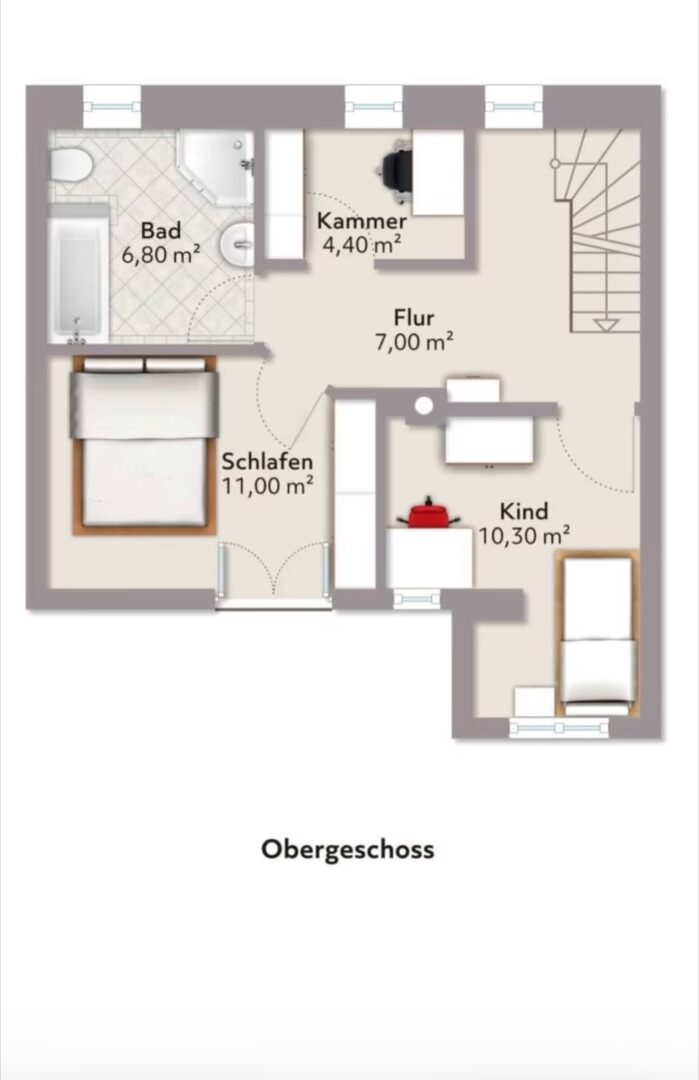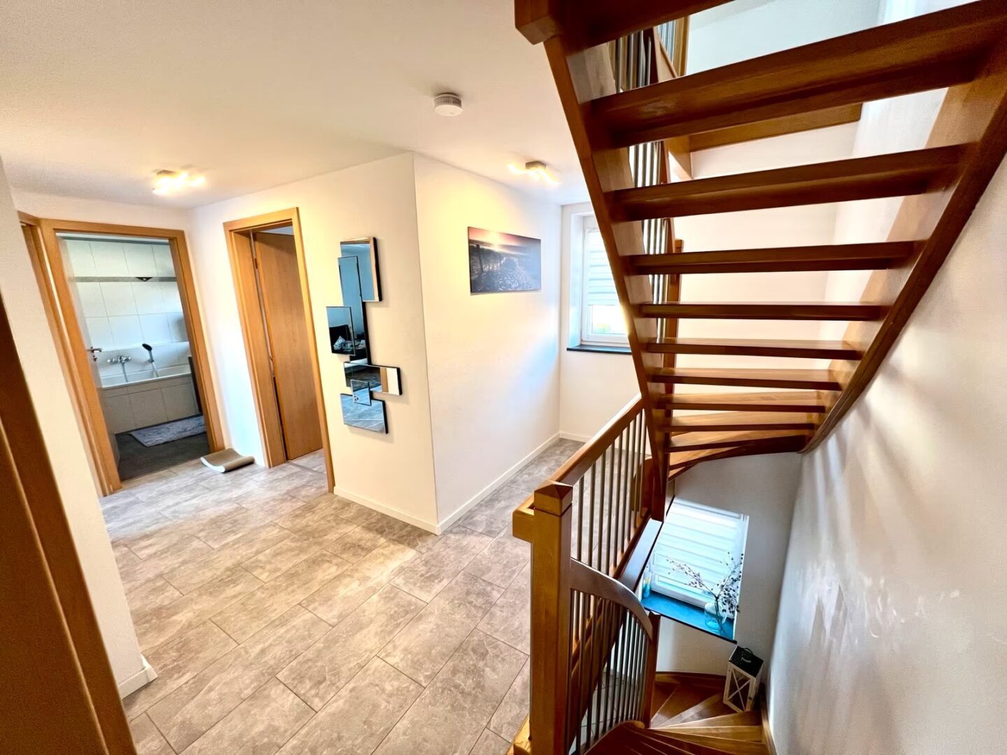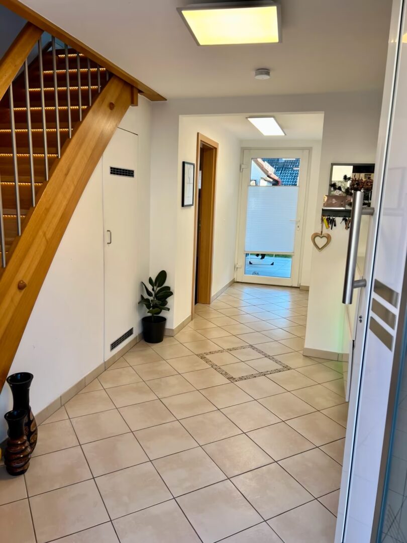 Das Erdgeschoss überzeugt durch ein angenehmes Wohngefühl und ist vollständig mit Fußbodenheizung ausgestattet. Zusätzlich besteht die Möglichkeit zum Anschluss eines Kamins, was den Wohnkomfort weiter erhöhen kann.