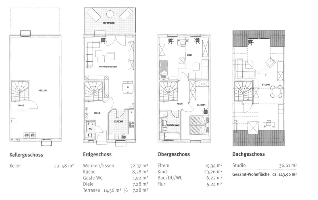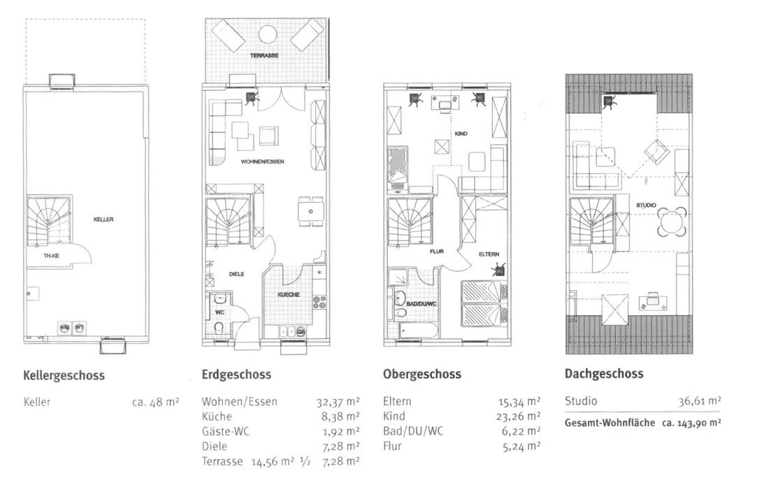 Willkommen in Ihrem neuen Zuhause! Vor Ihnen liegt ein traumhaftes Niedrigenergiehaus in Form eines Reihenmittelhauses, das mit seinen 144 qm Wohnfläche und 51 qm Nutzfläche über vier Stockwerke ein modernes und komfortables Wohnen verspricht.