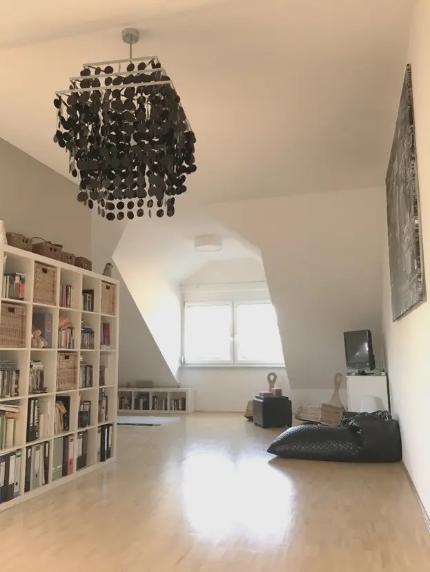 Das Dachgeschoss begeistert mit einem geräumigen und hellen Studio mit Parkett und 2,90 m Deckenhöhe – hier können Sie Ihre kreativen Ideen ausleben und Ihre persönliche Wohlfühloase gestalten.