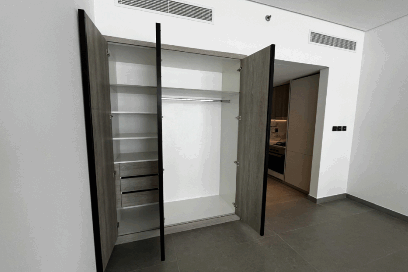Das Apartment überzeugt durch seine großzügige Raumaufteilung und die geschmackvolle Einrichtung. Helle Räume und eine moderne Küche machen das Wohnen zum puren Genuss. Der beeindruckende Ausblick durch die bodentiefen Fenster rundet das Gesamtbild ab und schafft eine einladende Atmosphäre.
