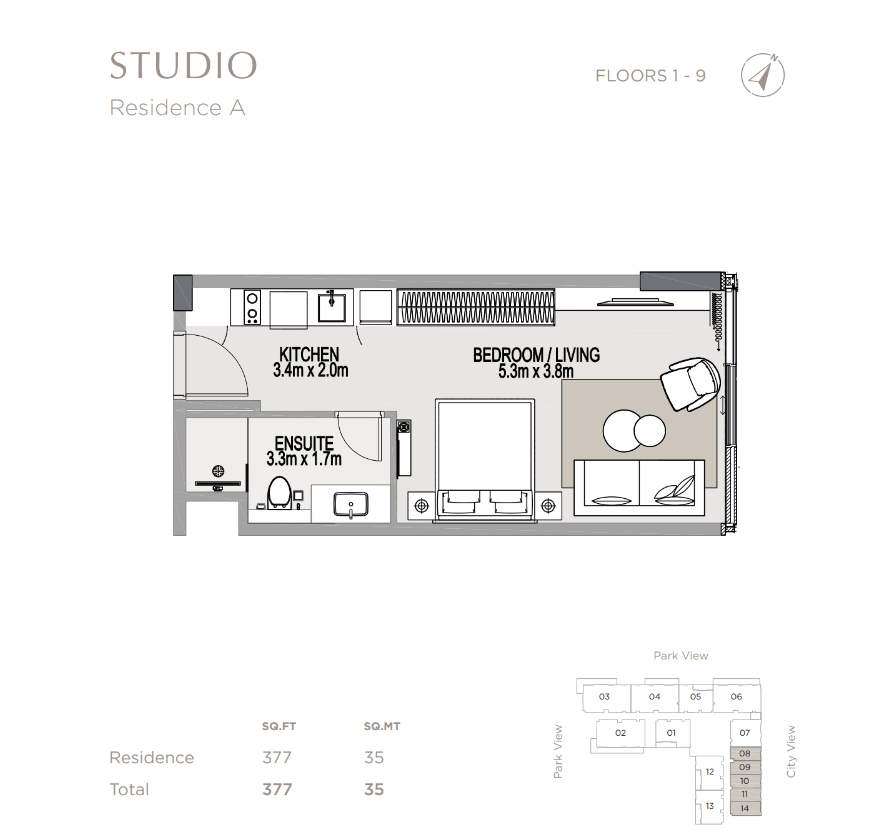 Willkommen in diesem einzigartigen Studio-Apartment, das Singles und Investoren gleichermaßen ansprechen wird. Die ausgestattete Küche verfügt über maßgefertigte Küchenschränke von Snaidero aus Italien und deutsche Geräte von Bosch. Hier können Sie Ihre kulinarischen Fähigkeiten entfalten und köstliche Mahlzeiten zubereiten. Die Kombination von modernem Design und High-End-Ausstattung macht dieses Apartment zu einem wahren Juwel.